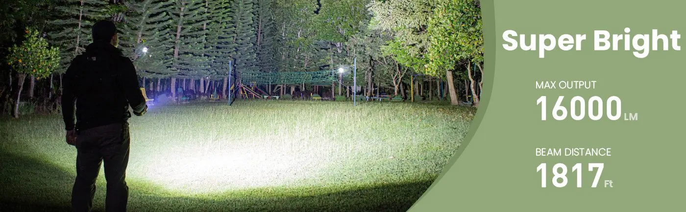 Super Bright & Extremely Powerful: Sofirn Q8 plus equipped with 6*XHB50B LEDs at the 16000-lumen turbo mode, you can easily see objects at 1817 feet. And impressively, the Q8 Plus can maintain that brightness for 2.6 hours. This bright light illuminates a larger area with soft, useful light at five brightness settings. It is a perfect outdoor companion.