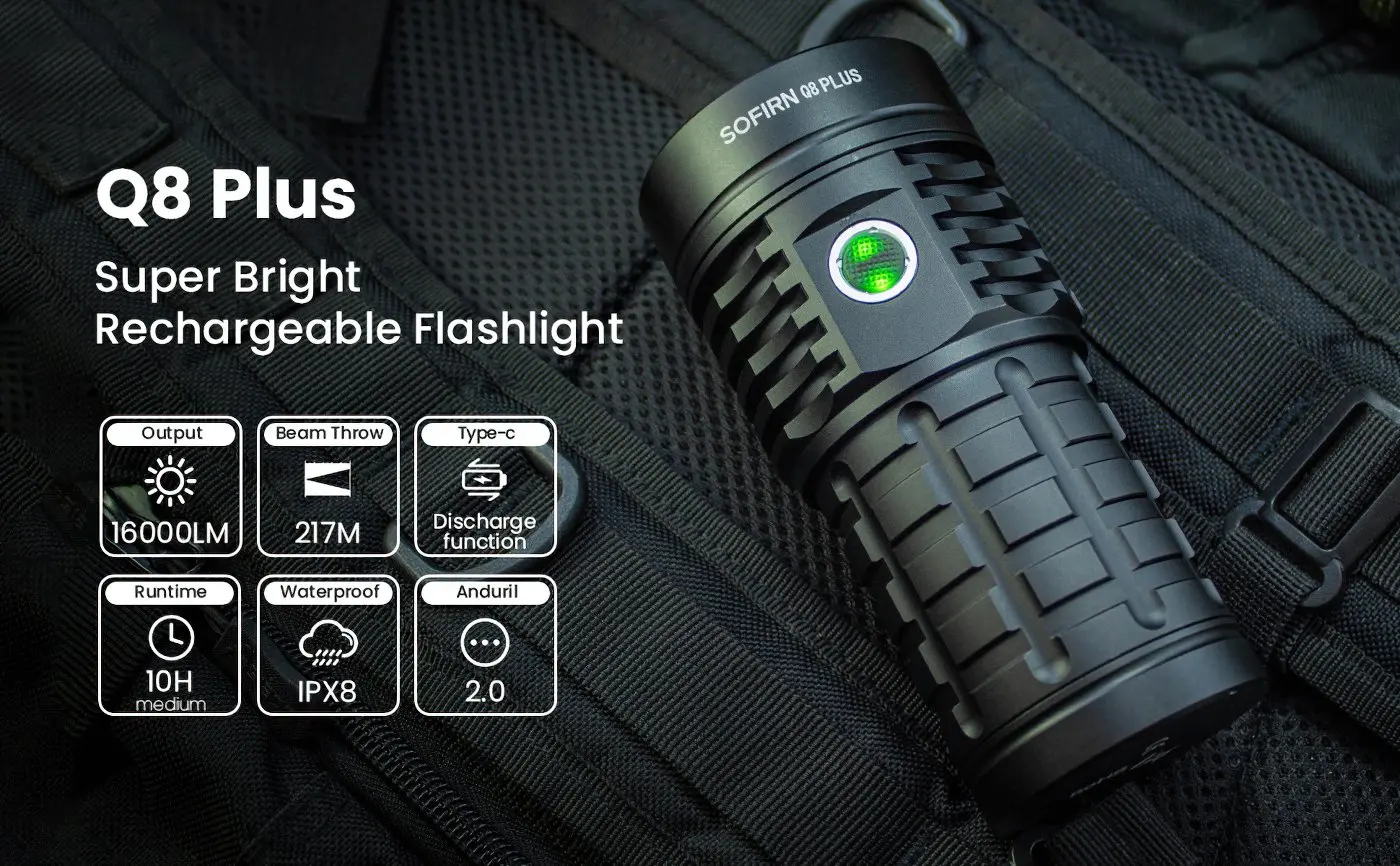 Emitting Color: changeable, Size: S, Ships From: Russian Federation - Sofirn Q8 Plus Super Powerful LED Flashlight 16000lm USB C Rechargeable 21700 Anduril 2.0 Torch XHP50B Reverse Charging