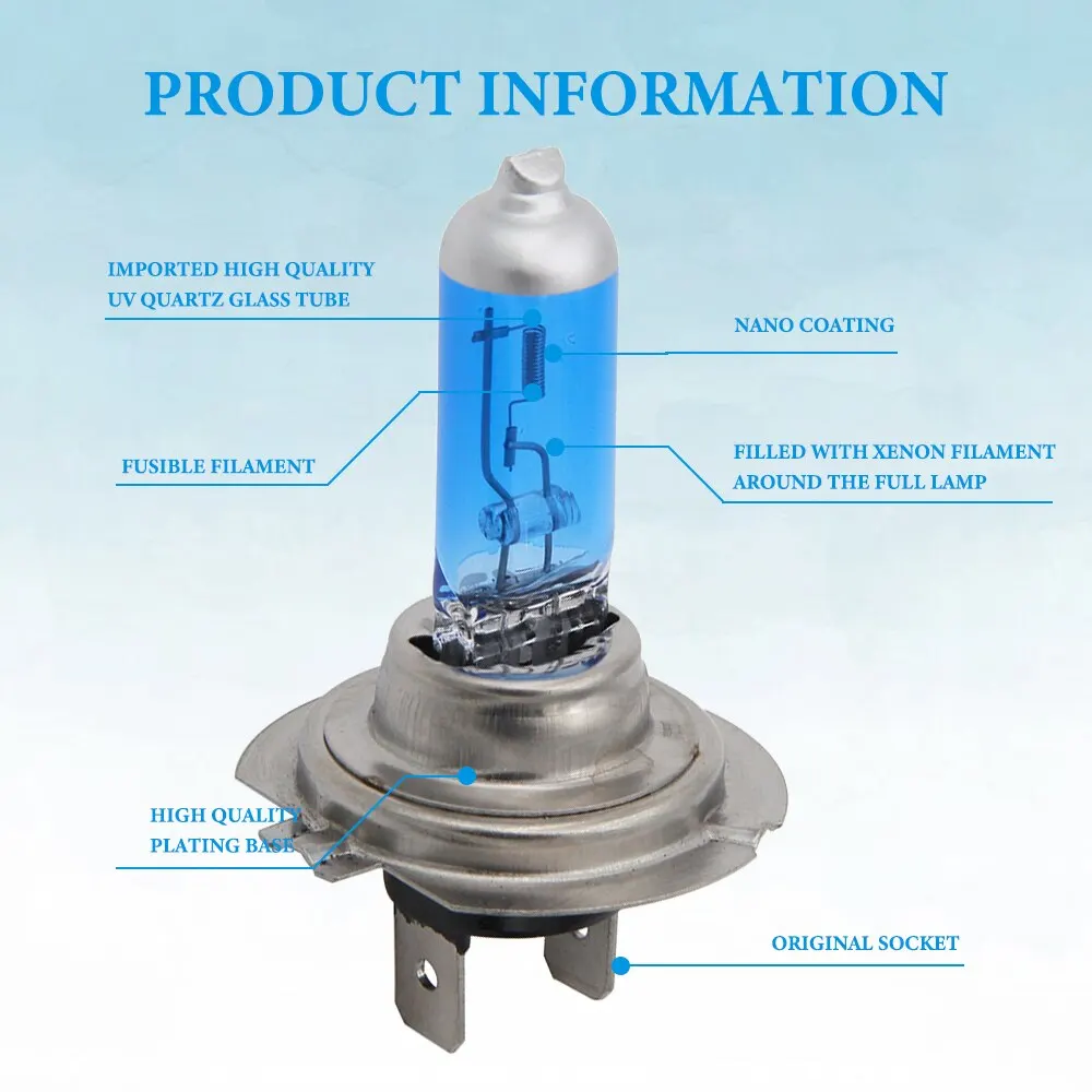 2PCs H7 LED Bulbs 55W 100W Halogen Bulbs Super Bright White Fog Lights 12V White Auto Bulb Headlights Lamp