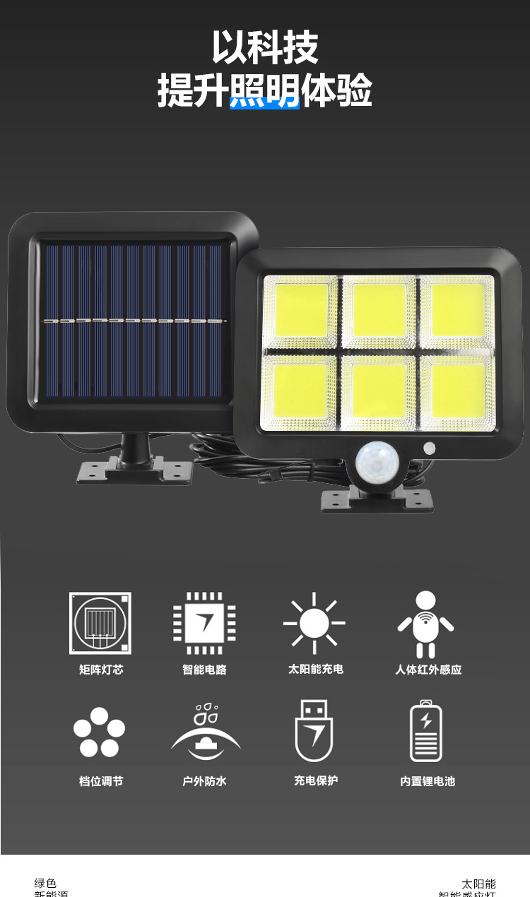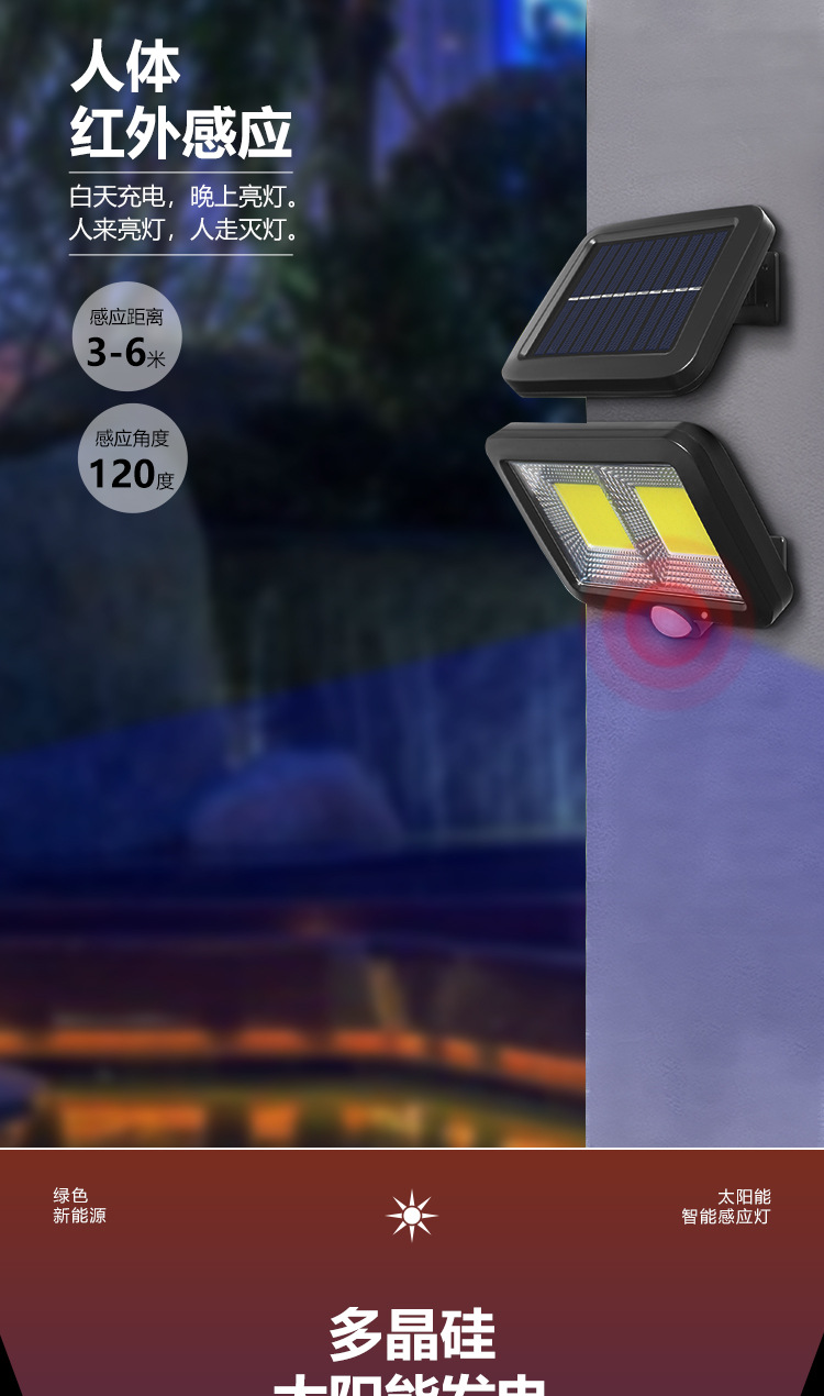Emitting Color: Golden Yellow - COB LED Solar Light Outdoor PIR Motion Sensor Solar Waterproof Wall Emergency Street Light Garage Lighting Patio Security Lights