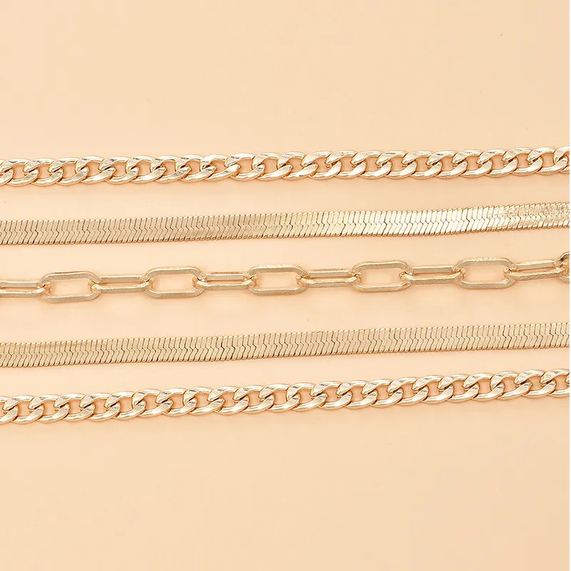 Multi-Layer Metal Chain Design: Features multiple layers of metal chains for a bold, textured look that adds depth to any