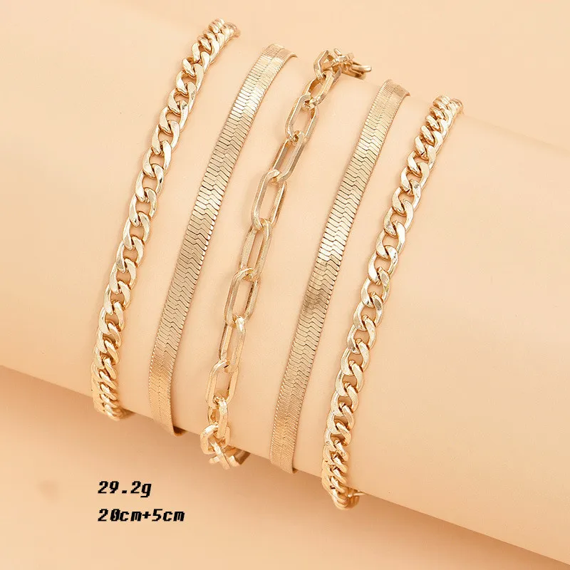 Europe and America Cross Border New Anklet Women’s Fashion Multi-Layer Metal Chain Anklet Set – Trendy and Bold Jewelry for Every Occasion