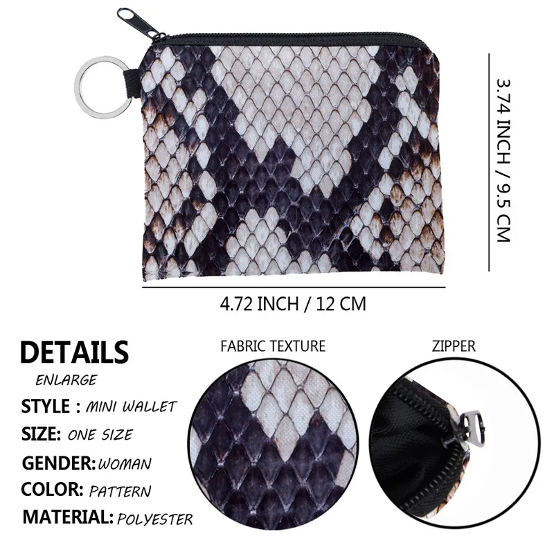 In conclusion, the European and American Cross-border Snake Print Coin Purse is a stylish, practical, and versatile accessory for anyone looking to keep their essentials organized. With its water-repellent material, compact design, and secure zipper closure, this purse provides both protection and style for your coins, keys, and other small valuables. Whether you’re looking for a fashionable daily companion or a reliable travel accessory, this purse has got you covered.