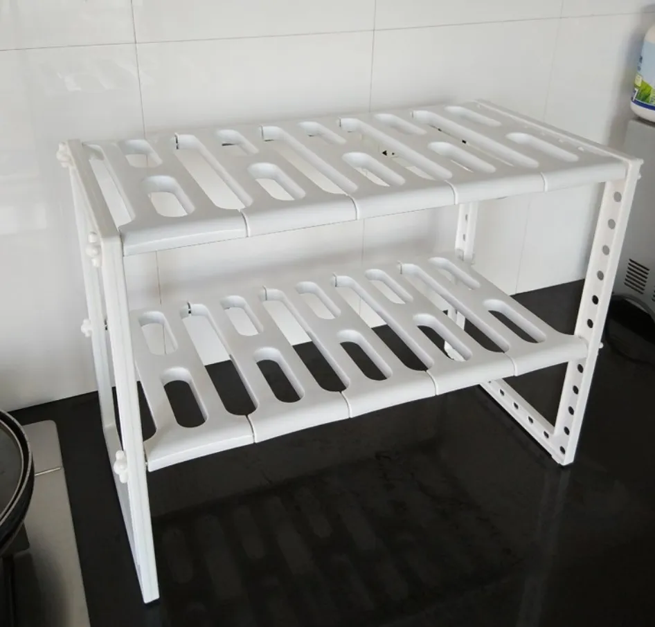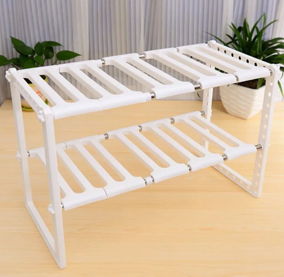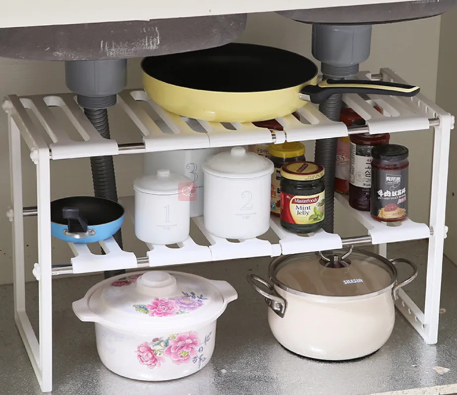 Adjustable 2 Tier Under Sink Shelf Kitchen Storage Organize Rack Holder