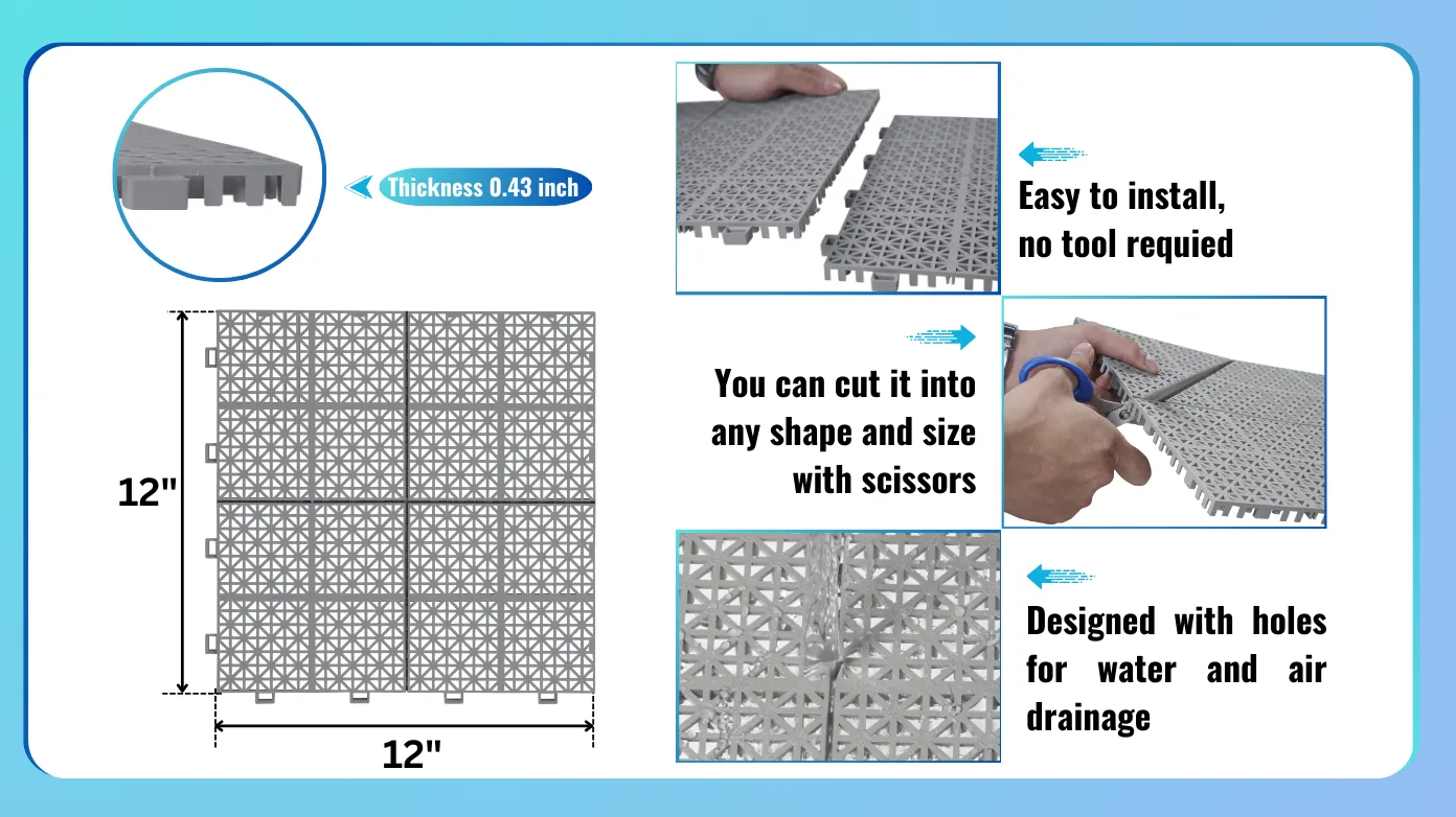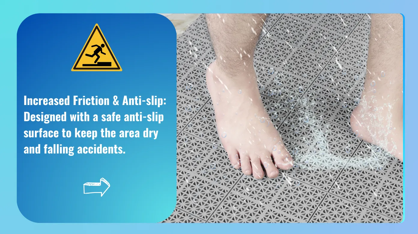 EFFICIENT DRAINAGE DESIGN: Our innovative design enhances friction to prevent slipping, improving stability and firmness, making these deck
