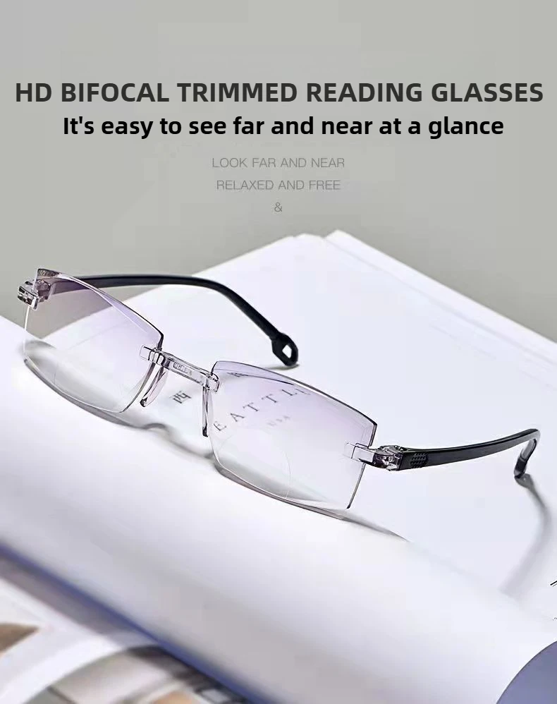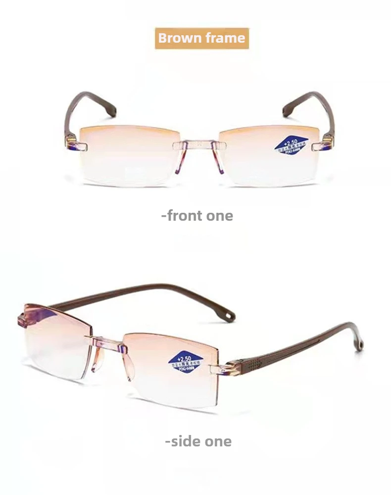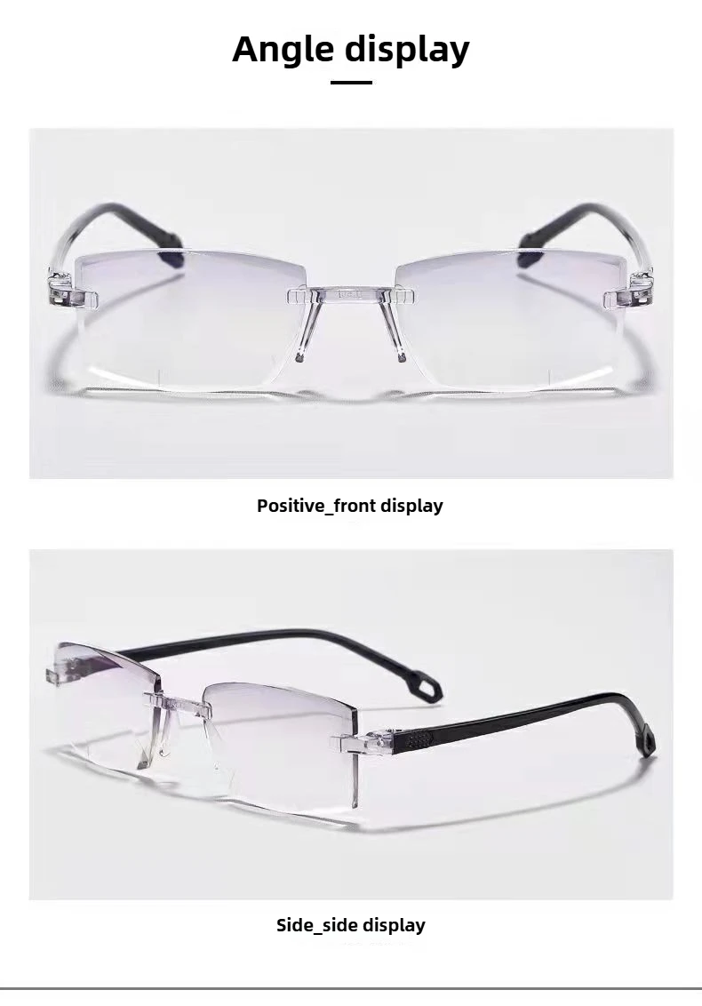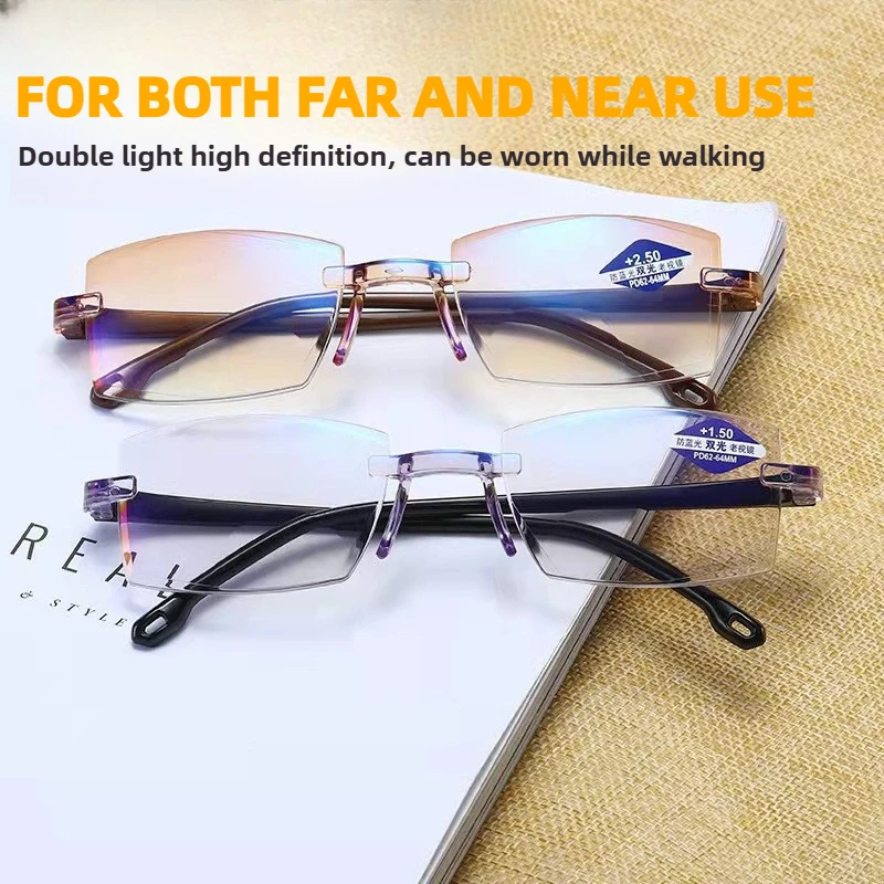 Men Women Rimless Reading Glasses Bifocal Far Near Anti Blue Light Magnification Eyewear Presbyopic Glasses Diopter 0 +100 +150 +200 +250 +300 +350 +400