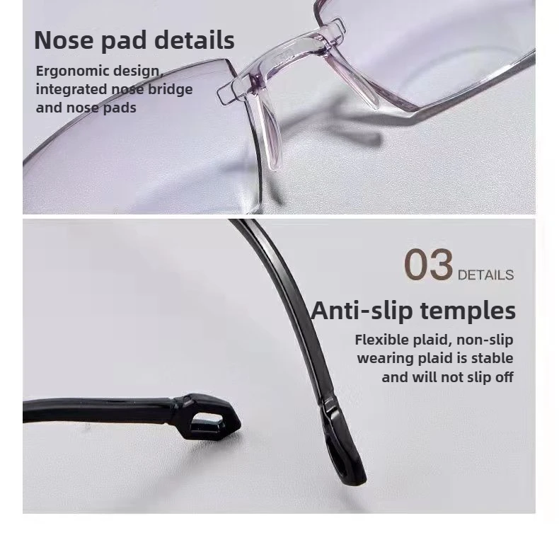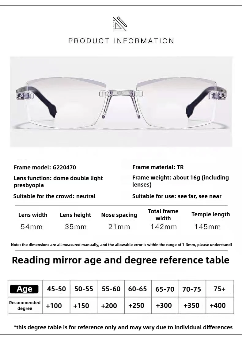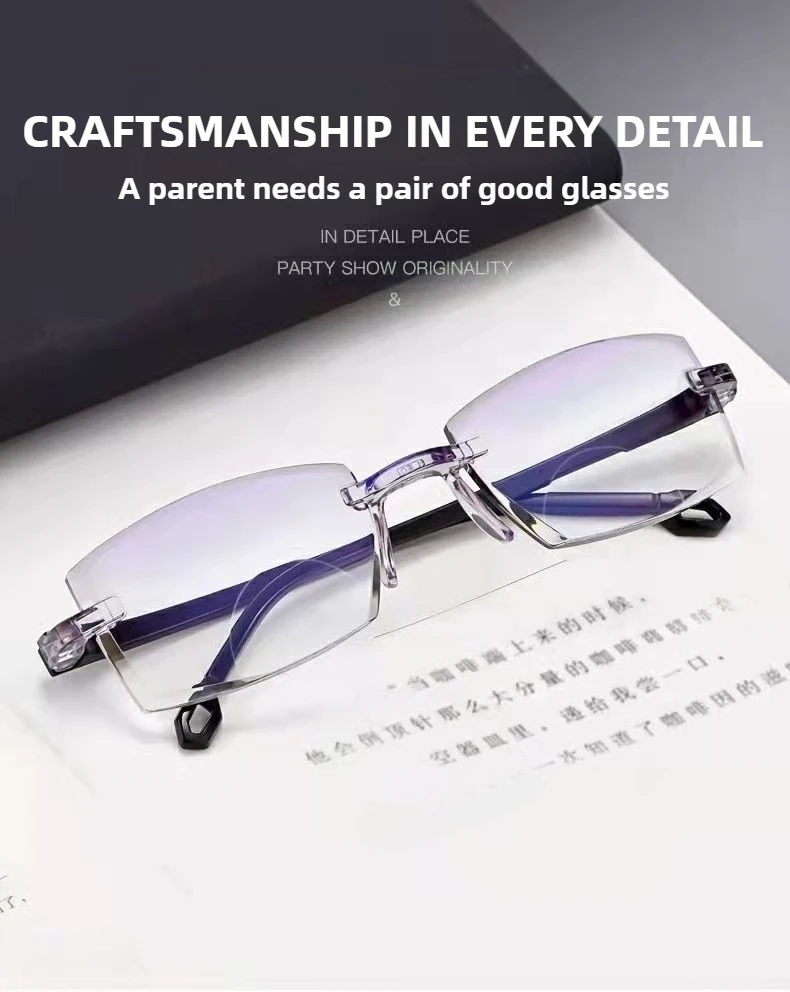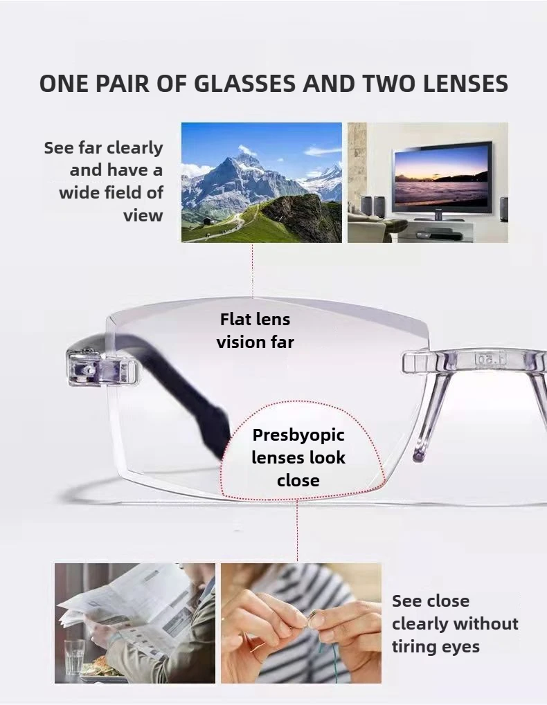 Men Women Rimless Reading Glasses Bifocal Far Near Anti Blue Light Magnification Eyewear Presbyopic Glasses Diopter 0 +100 +150 +200 +250 +300 +350 +400