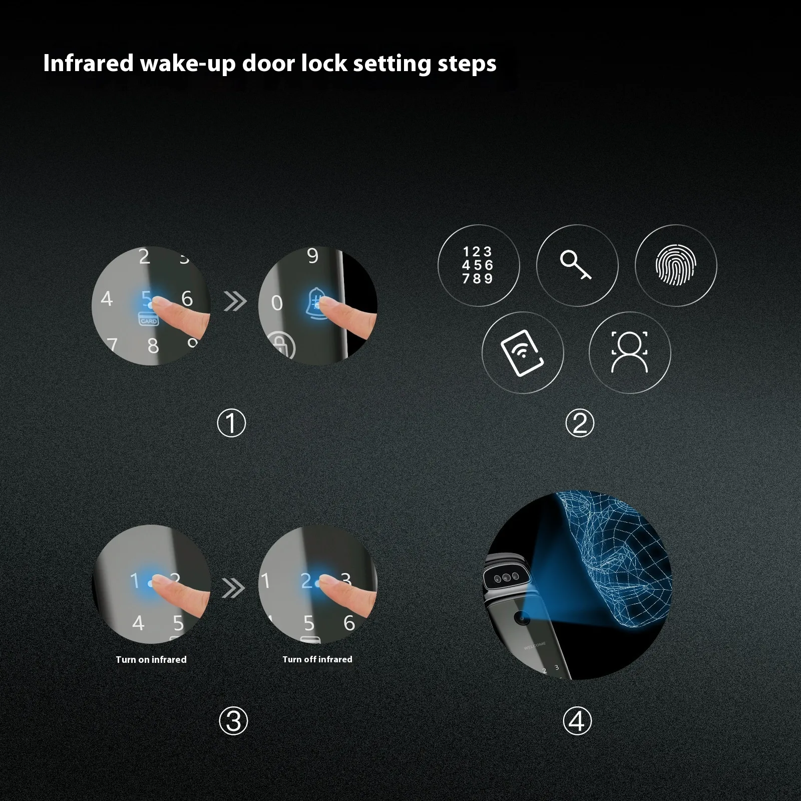 Equipped with an advanced infrared face scanning system, the lock provides accurate recognition even in low light conditions or when there are minor facial changes. The system uses AI-powered algorithms to compare the scanned image with stored data and make instant decisions. This ensures high security and reduces the risk of unauthorized access, all while offering seamless, fast operation.
