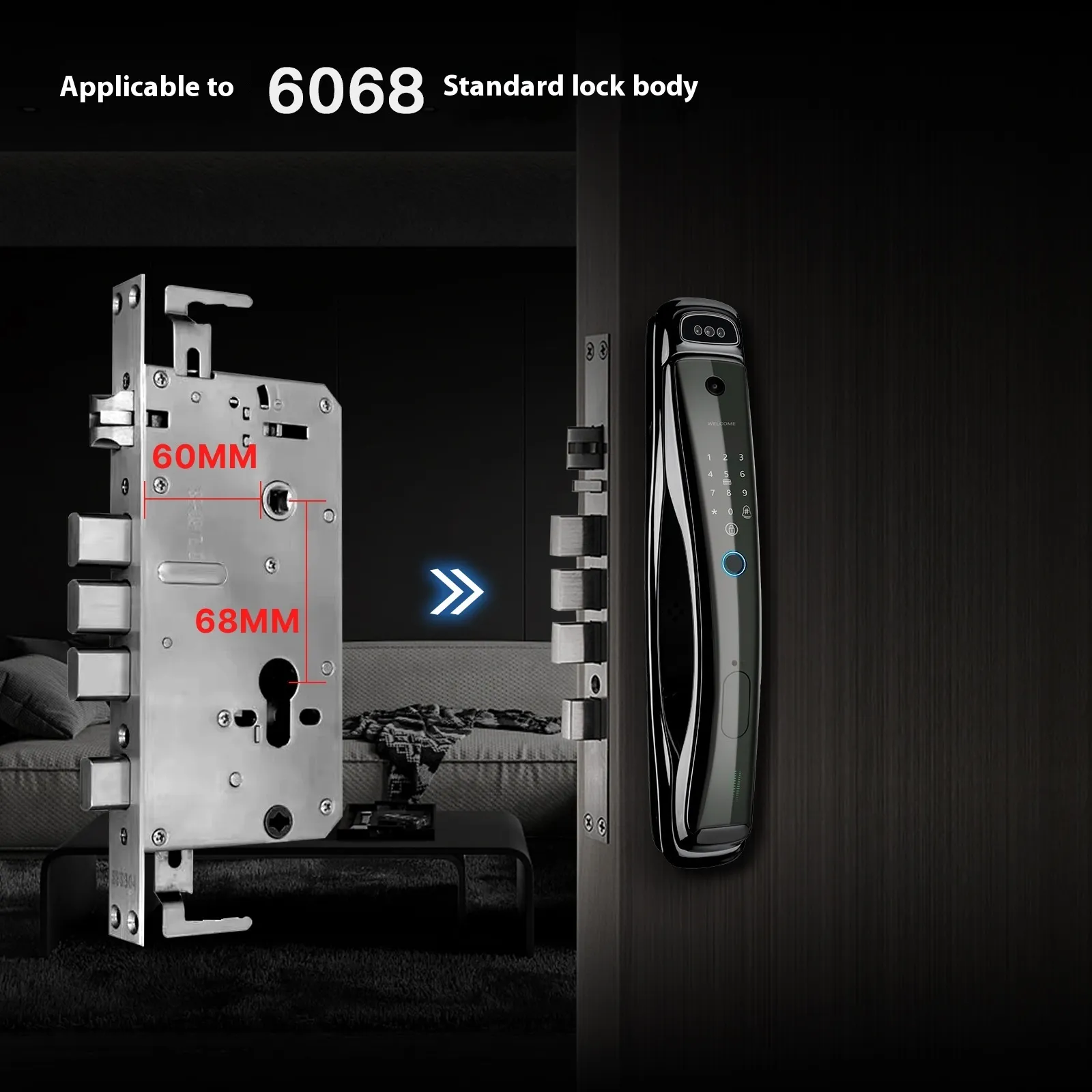 The Face Recognition Intelligent Security Door Lock uses advanced face recognition technology to instantly identify authorized individuals. Simply approach the lock, and within seconds, the system will scan your face and grant access if you’re recognized. This contactless access eliminates the need for keys, keycards, or PIN codes, offering an ultra-convenient and secure entry method. Whether you’re carrying groceries, your hands are full, or you just want a quick and easy entry, the smart face recognition system takes care of it.