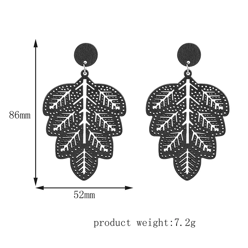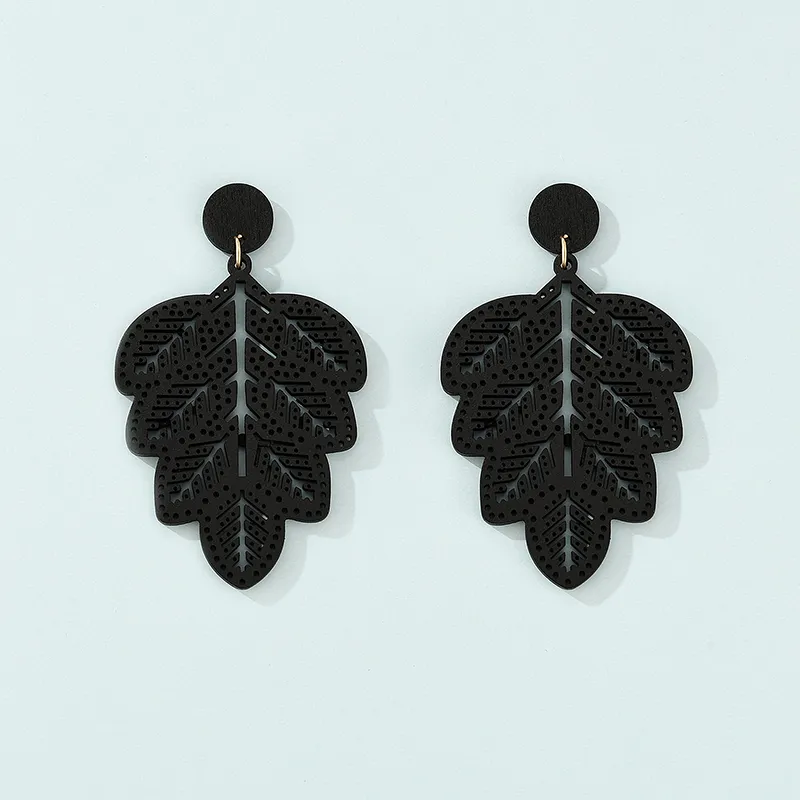 Fashion Natural Wood Leaf Earrings Black