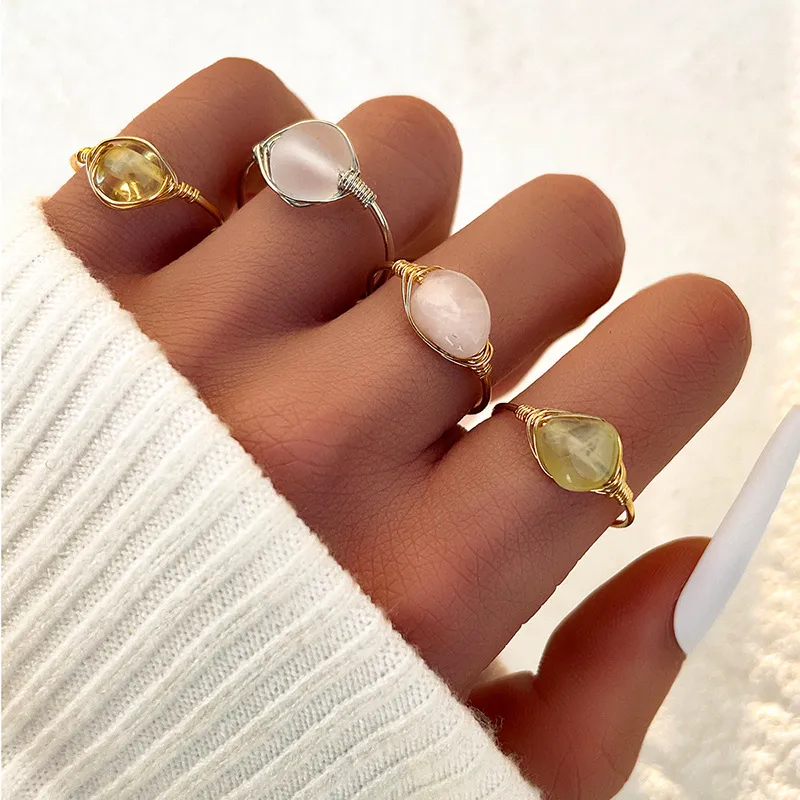 Fashion Niche Light Luxury Jewelry: Natural Stone Ring Set of 4pcs – A Perfect Blend of Elegance and Modern Style