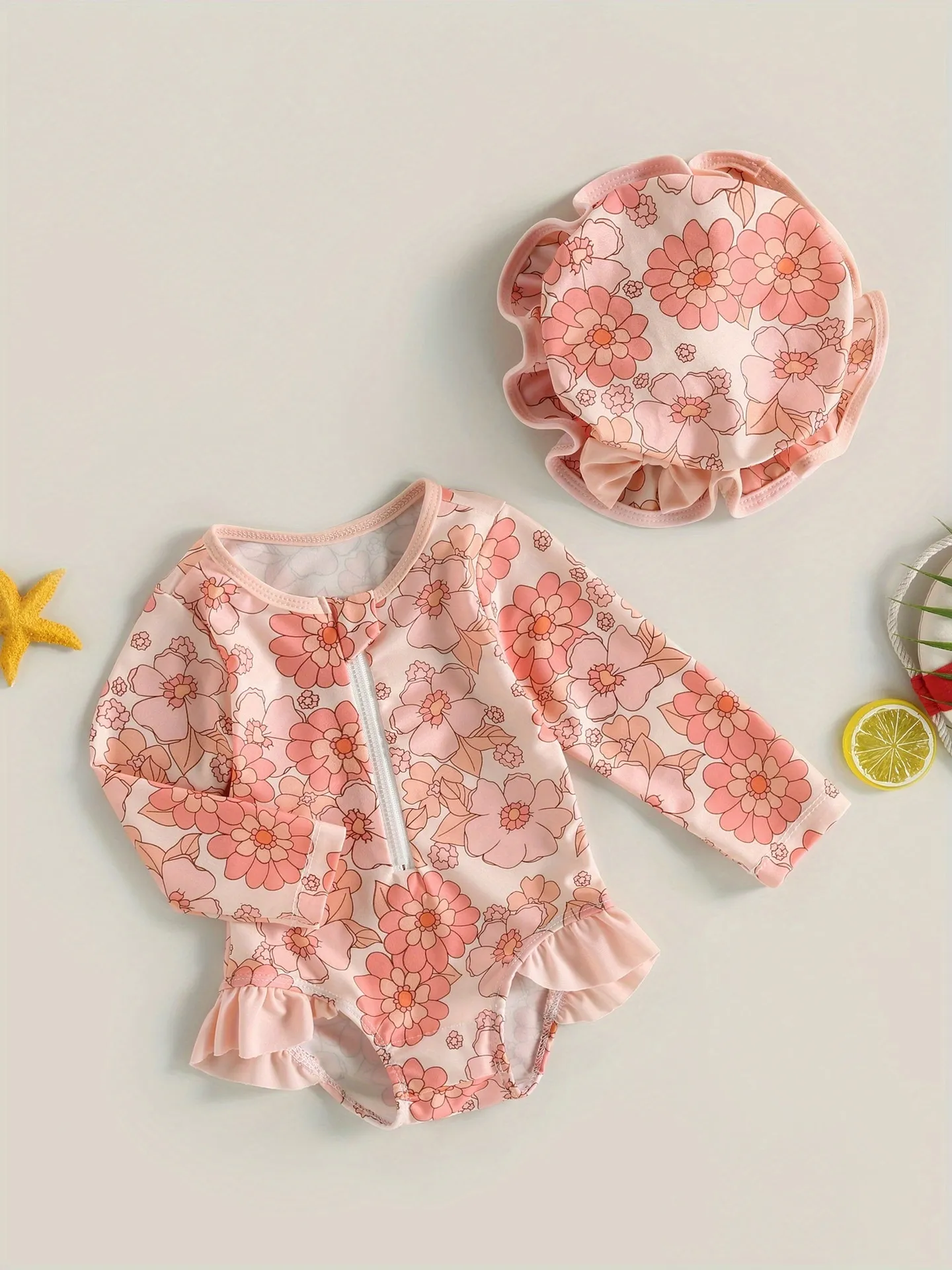 Complete Sun Protection: The combination of UV-protective fabric and the matching hat ensures your baby girl is fully