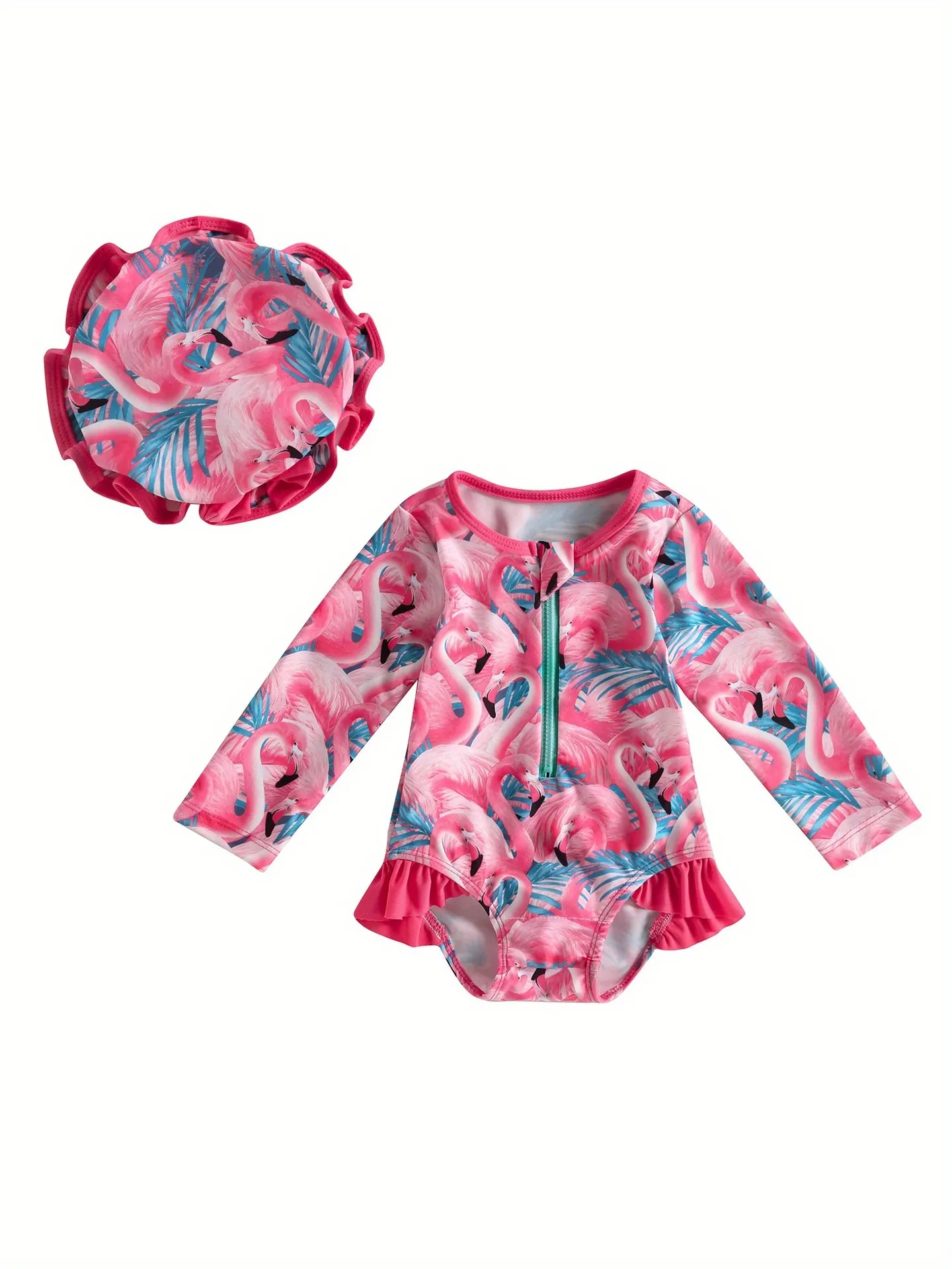 Matching Hat for Complete Look: The coordinating hat is designed to match the swimsuit perfectly, providing additional sun