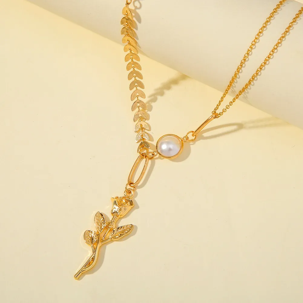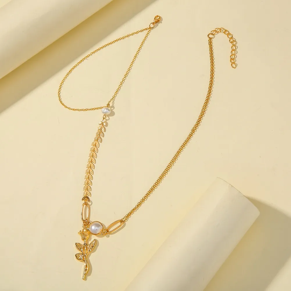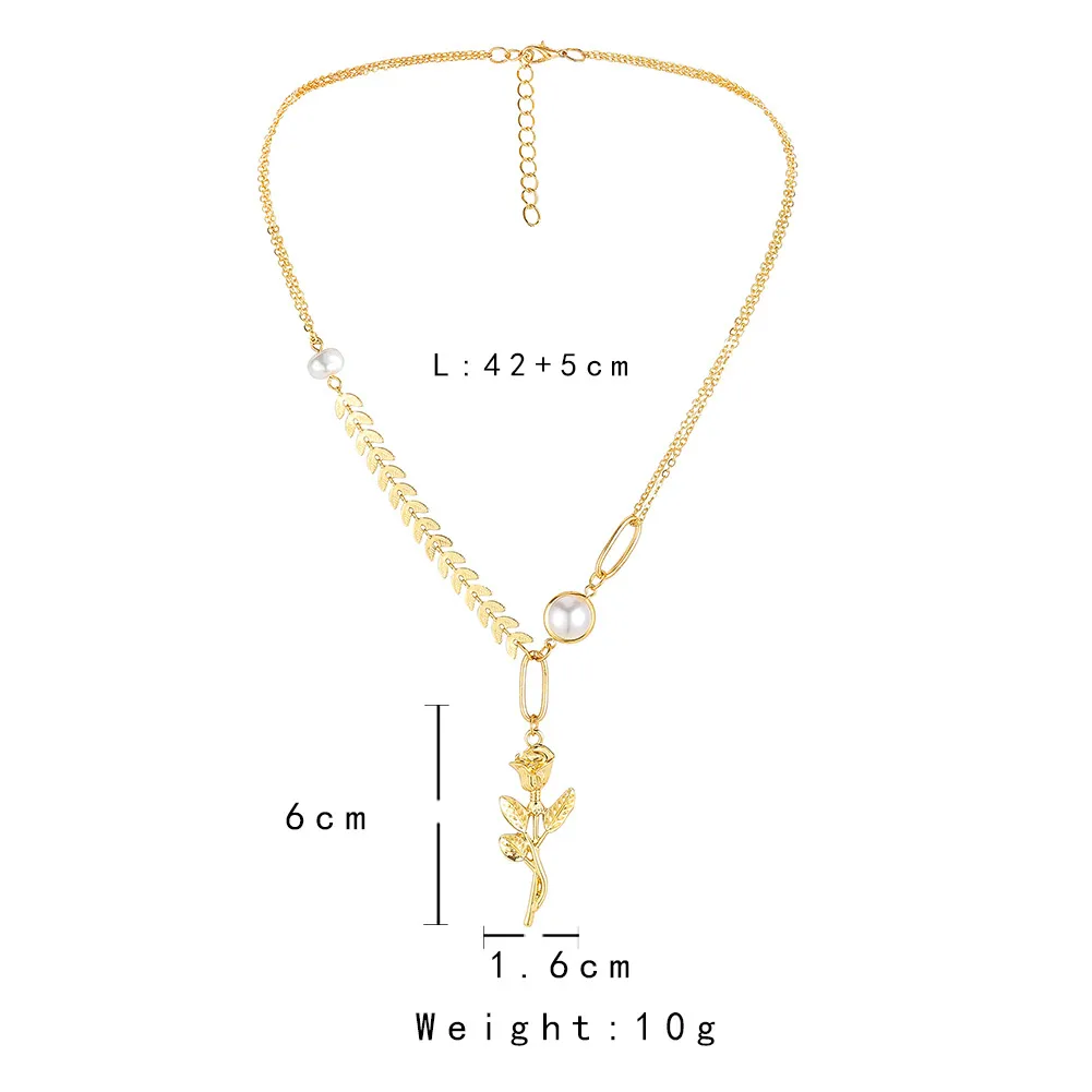 Fashion Rose Pendant Wheat Ear Chain Pearl