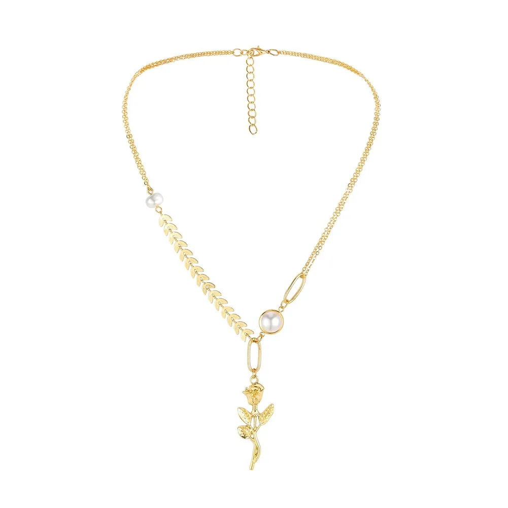 Fashion Rose Pendant Wheat Ear Chain Pearl