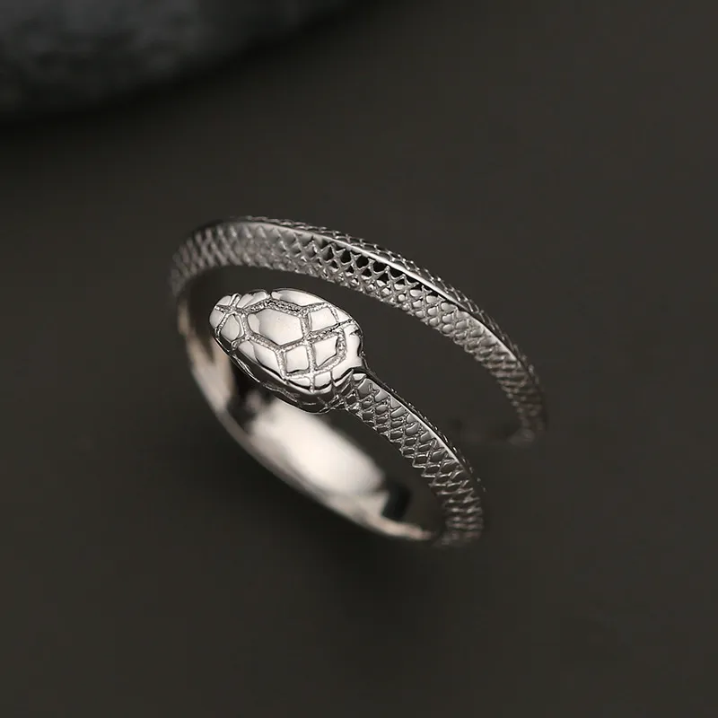 The retro design adds a vintage charm to the ring, combining modern style with the timeless beauty of the snake. The coiled design wraps around the finger in a sleek and stylish way, creating a striking yet understated look. Whether you're dressing up for a special occasion or looking to add some edge to your everyday wear, this ring is the perfect way to do so.