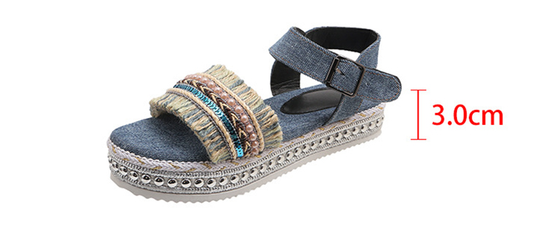 Fashion Tassel Denim Sandals With Thick-soled Flat Heel For Women