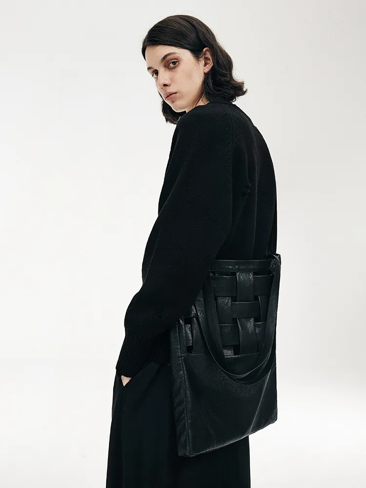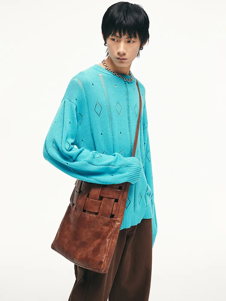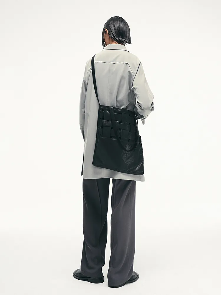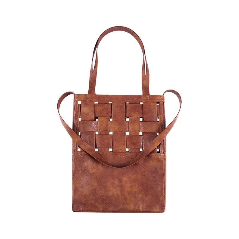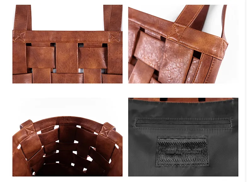 Faux Leather Woven Structure Crossbody Shoulder Bag