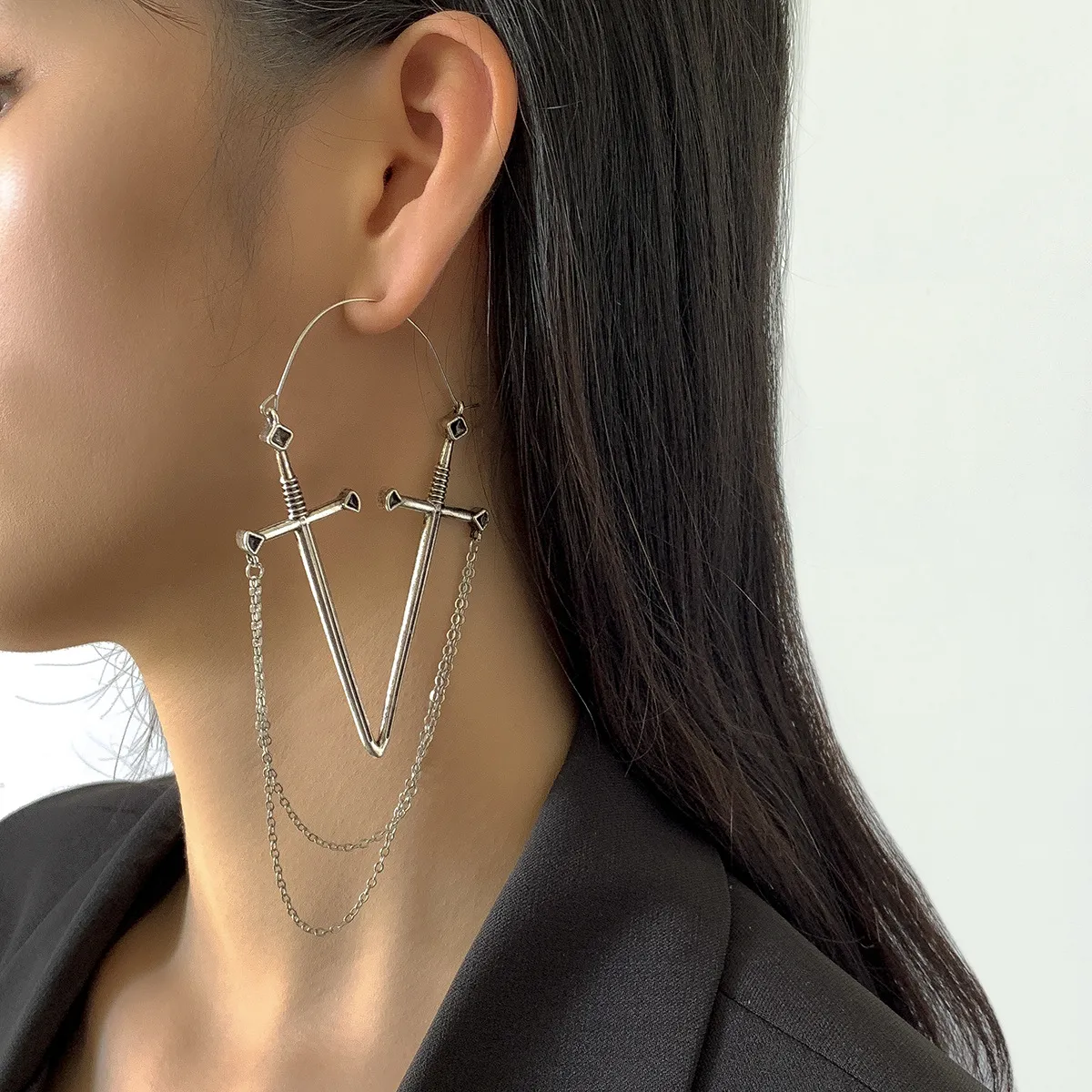 Exaggerated Sword-shaped Design: Featuring a bold, sword-shaped pendant, this earring is a unique and powerful statement