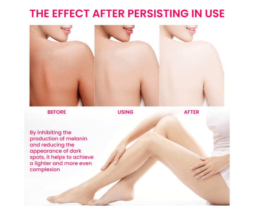 In addition to lightening and brightening, this essence also offers moisturization that helps maintain smooth, soft, and supple skin. The hydrating properties of the essence ensure that your skin doesn’t become dry or rough, which is especially important for delicate areas of the body.
