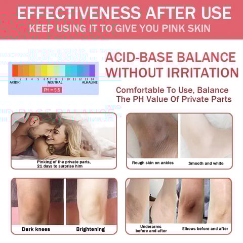 The essence is formulated to enhance the natural beauty of your intimate area. Whether you're looking to improve the tone of your bikini line, underarms, or other intimate regions, this product helps bring back a radiant glow, making the skin appear brighter and more even.