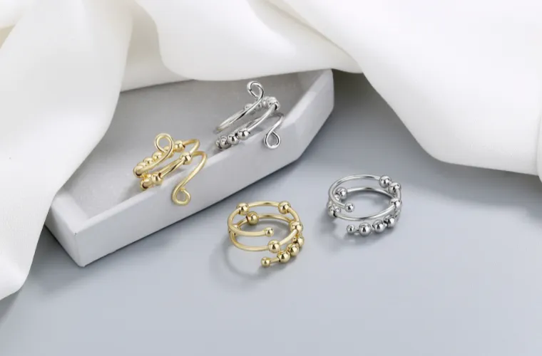 Spinner fidget rings are one of the most popular types of fidget rings. These rings feature a central band that can be spun around the main band, providing a calming and satisfying motion. Spinner fidget rings are often designed with a sleek, minimalistic appearance, making them easy to wear as everyday jewelry. The spinning motion helps reduce stress and provides a soothing tactile experience.