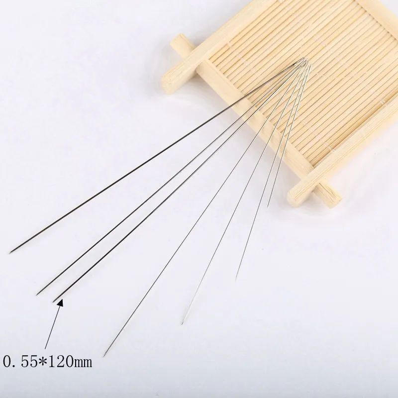 0.55 * 120mm needle-thickness mm, length 12cm, pinhole can only wear threads below 0.3mm (can wear 3mm beads)