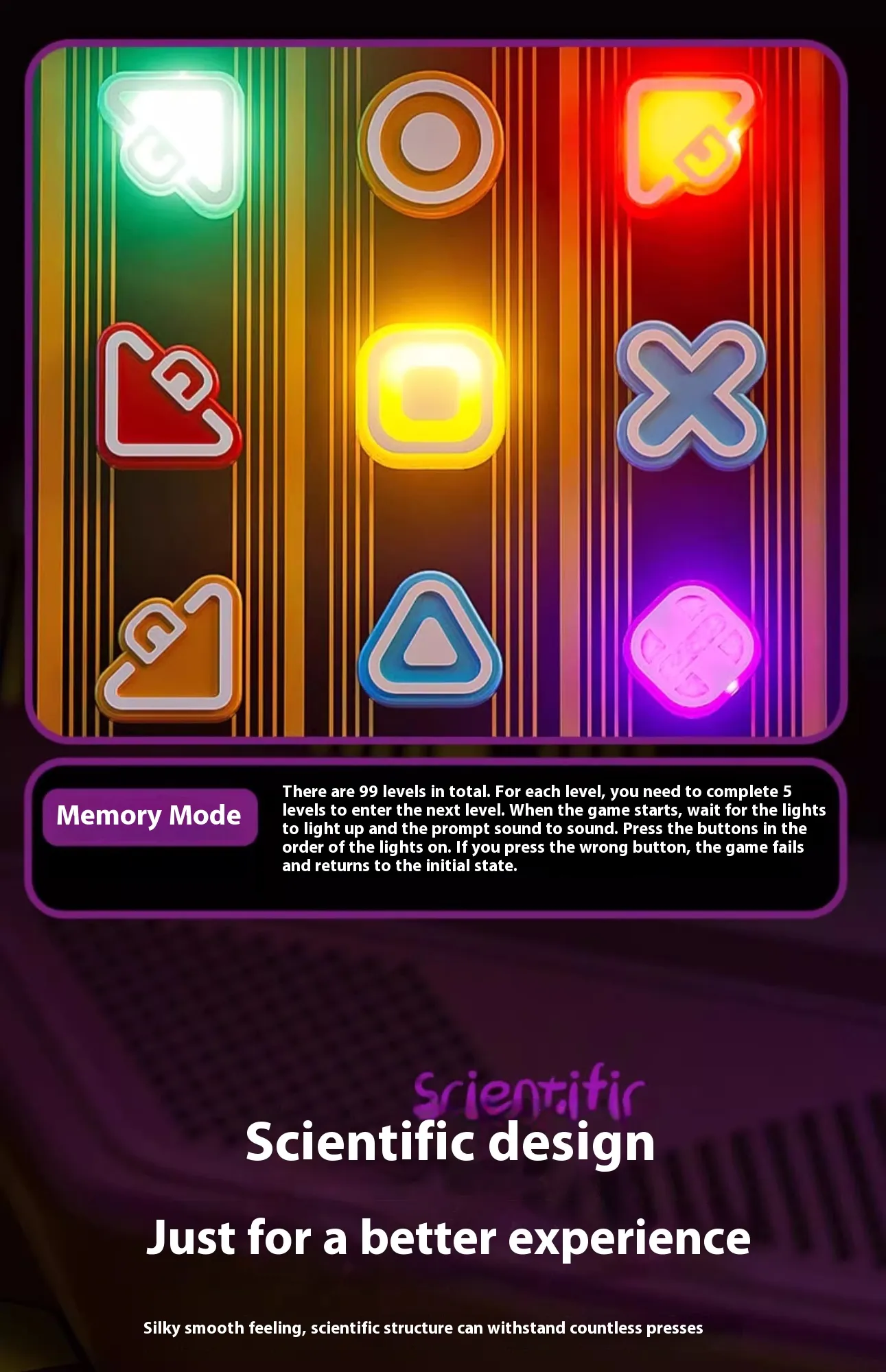 Playing the Finger Dancing Machine isn’t just fun; it’s also a great way to improve focus, hand-eye coordination, and rhythm skills. By tapping along to the beat and following the light cues, players sharpen their reflexes and enhance their timing. This combination of fun and skill-building makes it a valuable tool for children’s development as well as a challenging game for teens and adults.