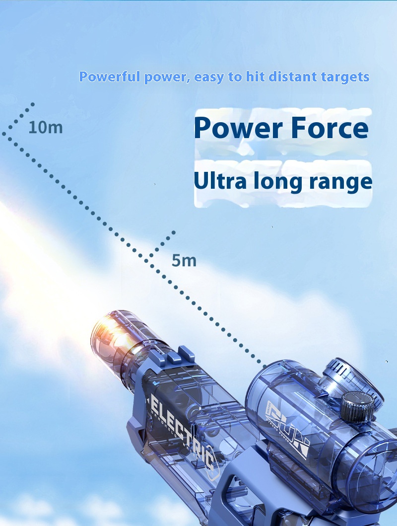 This electric water pistol brings hours of fun with its automatic spray feature and cool lighting effects, perfect for summer sports and outdoor play. Designed for children, it offers easy handling and continuous water blasting, ideal for water battles or poolside entertainment. With its sleek and fun design, it makes a fantastic gift to enhance summer excitement.
