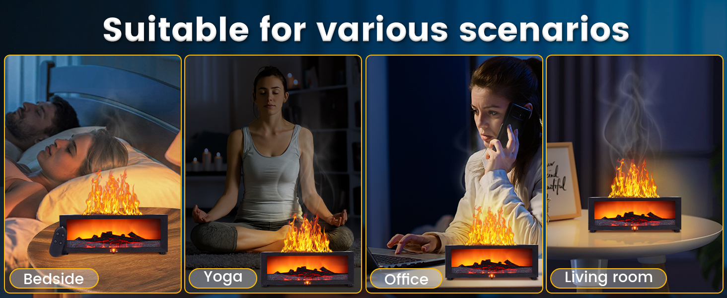 - 【simulated fireplace flame screen design】 creates a realistic flame effect, as if a warm flame is burning right in front, not only enhancing the visual experience but also adding a touch of warmth and comfort to the room. Whether used in the home, office, or bedroom, this humidifier brings a unique atmosphere to the environment while keeping the air moisturized.