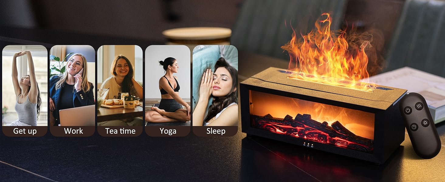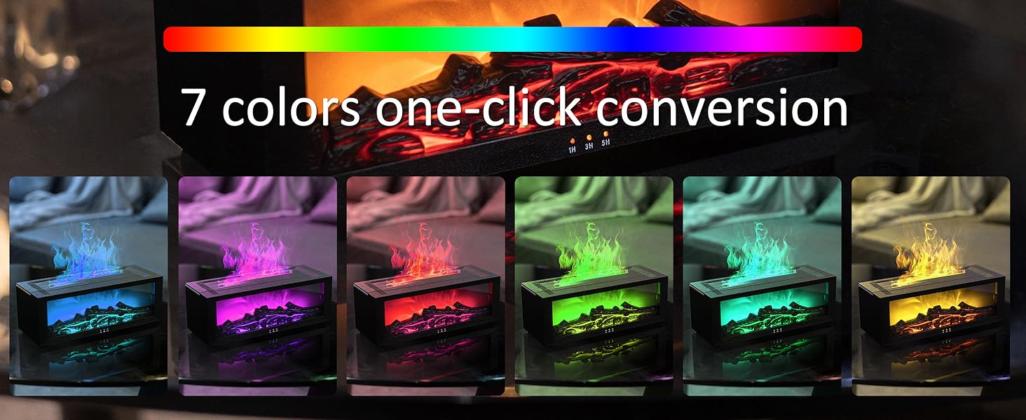 - 【Flame Lamp】Complemented by ambient flame lighting, the mist resembles real flames, featuring seven-color cycling, breathing, single-color fixation, and two sound reactive effects. You can freely choose according to your preferences! Suitable for bedrooms, offices, homes, yoga, games, and more. It provides you with high-quality enjoyment and enhances your quality of life.