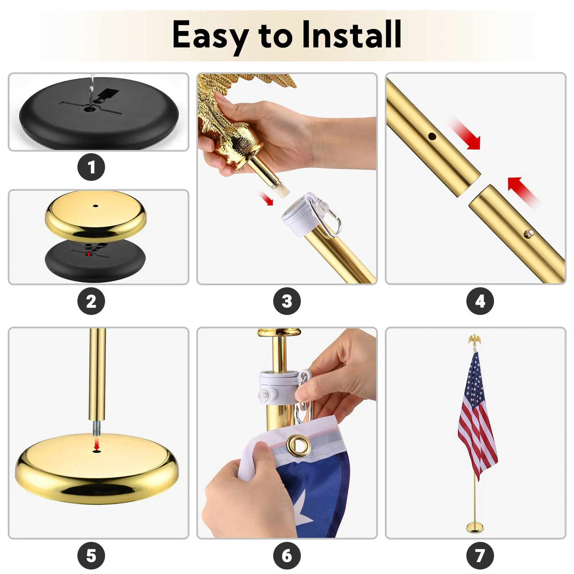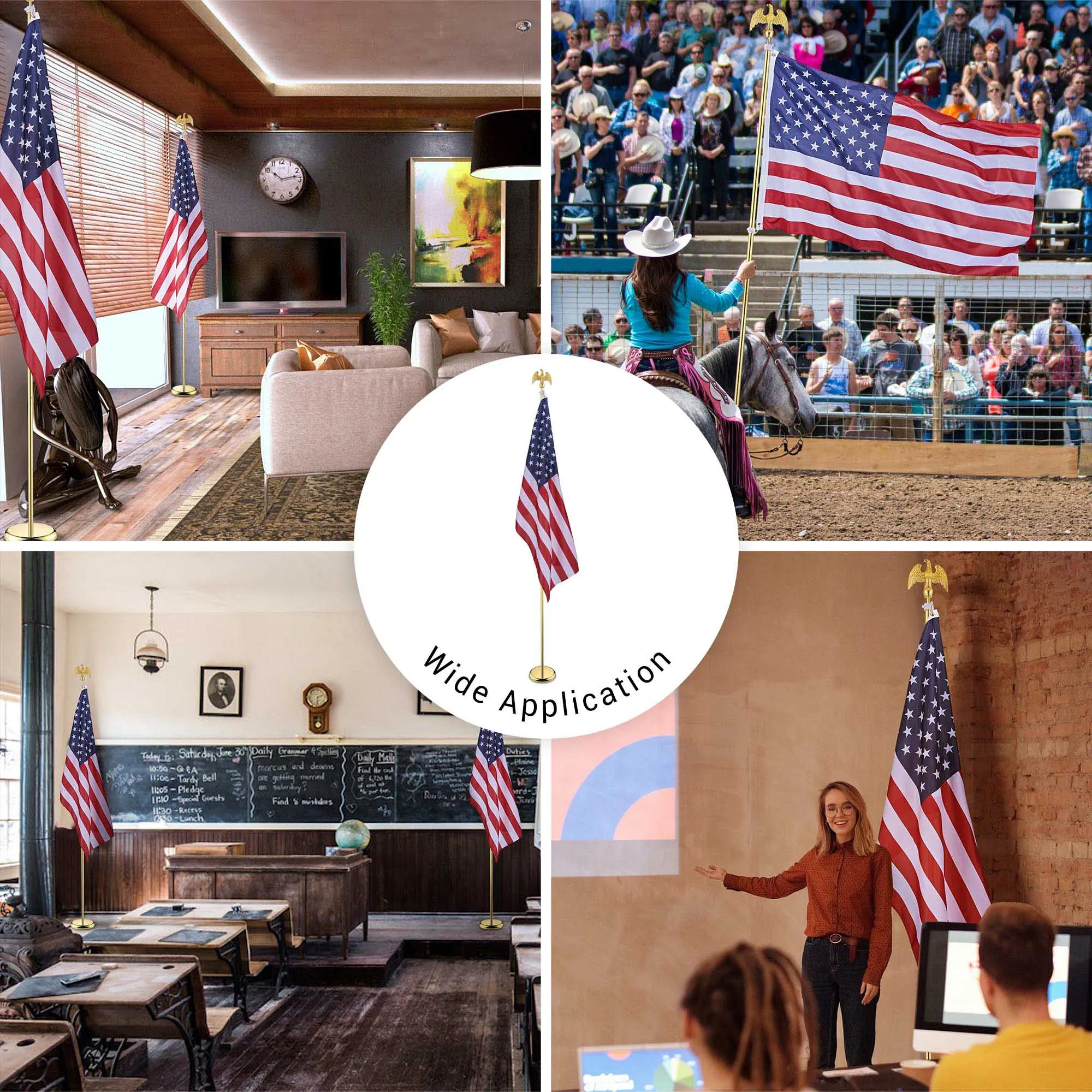 - Complete Flagpole Kit - Includes 2 pcs 8 ft indoor sectional flagpoles, 2 pcs gold eagle finials, 2 pcs American national flags, 2 pcs
