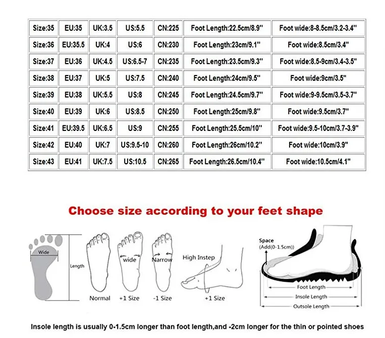 Sizes: 35, 36, 37, 38, 39, 40, 41, 42, 43