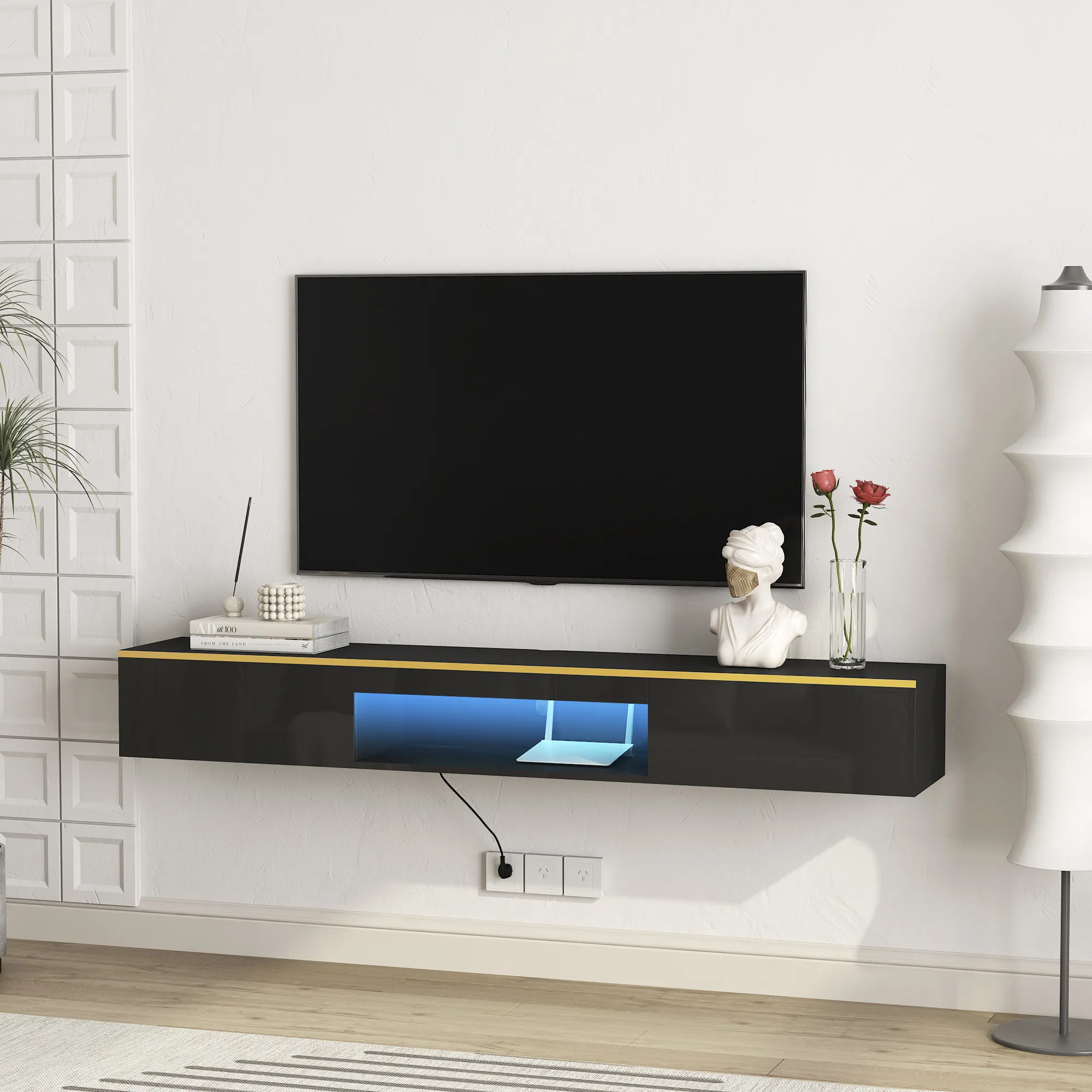 Sleek Floating Design: The floating TV stand offers a clean and modern look by elevating your TV off the