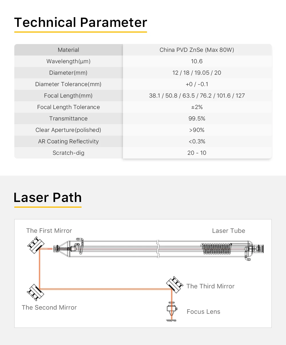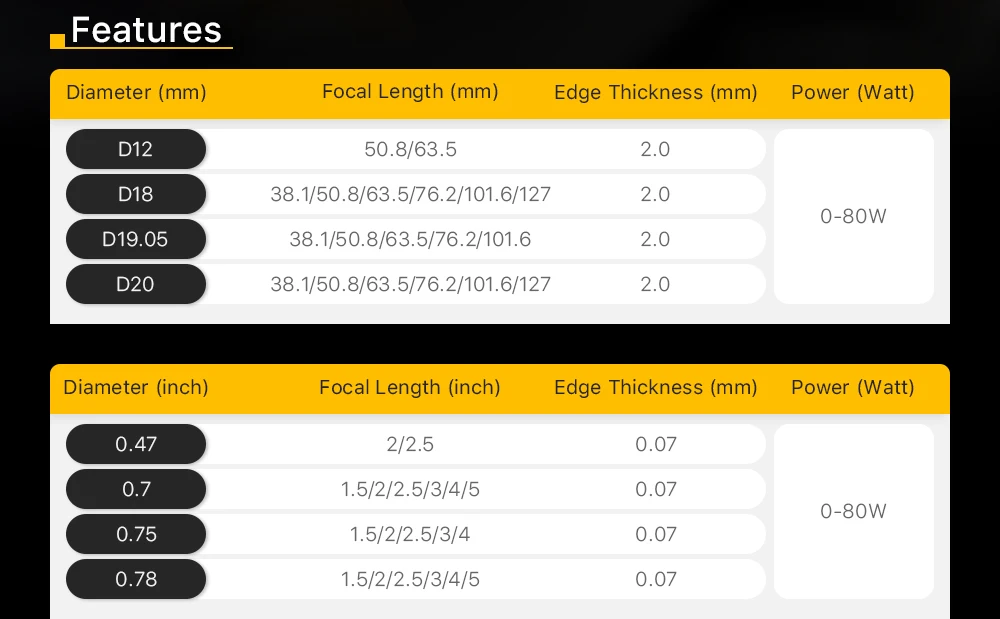 Focal Length: 50.8mm, Ships From: CHINA, Diameter: 40mm - Cloudray China CO2 ZnSe Focus Lens Dia.18 19.05 20 mm FL38.1 50.8 63.5 101.6 127mm 1.5 - 4" for Laser Engraving Cutting Machine