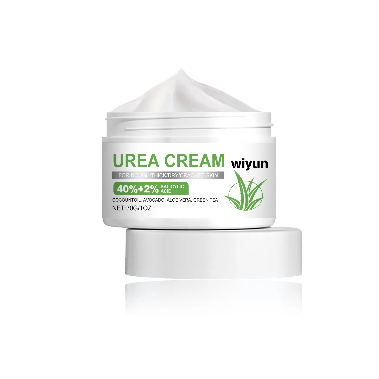 coconut oil, avocado oil, aloe extract, green tea extract, urea, salicylic acid.