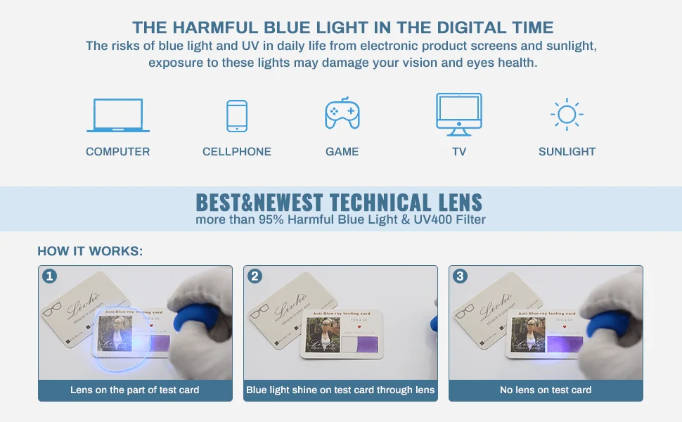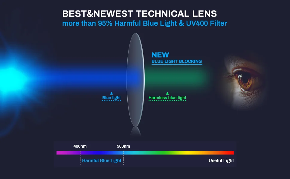 √ UV protection -- Anti-Blu-ray Lenses utilize special U.S. substrate processing technology to protect the eyes from ultraviolet radiation and block UV400.