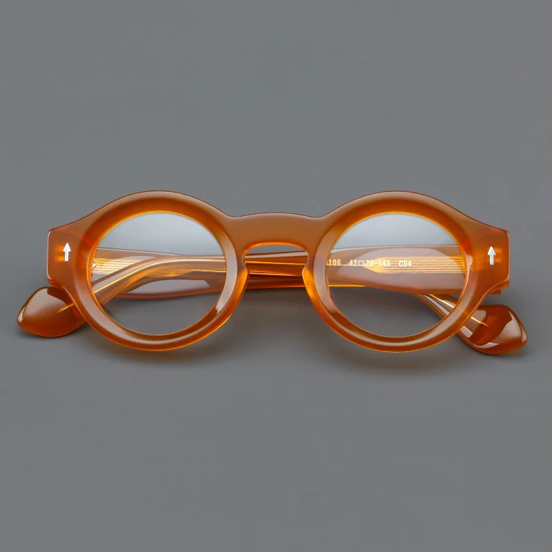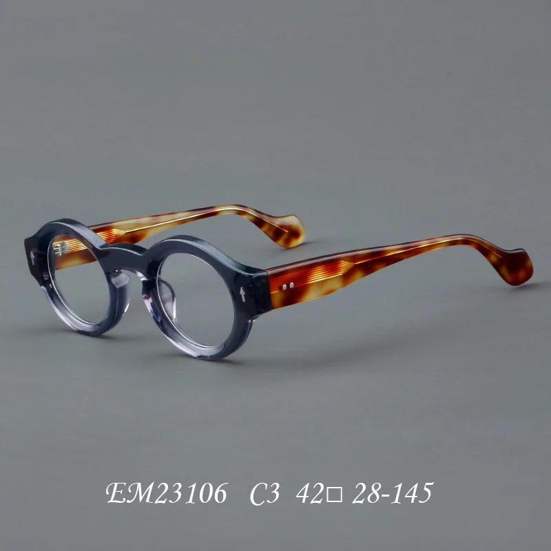 Frame Color: Blue, Eye Prescription: +450 - VCKA Round Acetate Reading Glasses Frame Retro Men Prescription Anti-blue discolor Women Custom Optics Retro Eyewear +0.50to +10