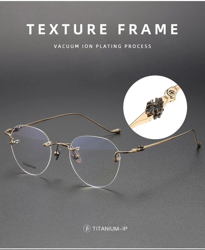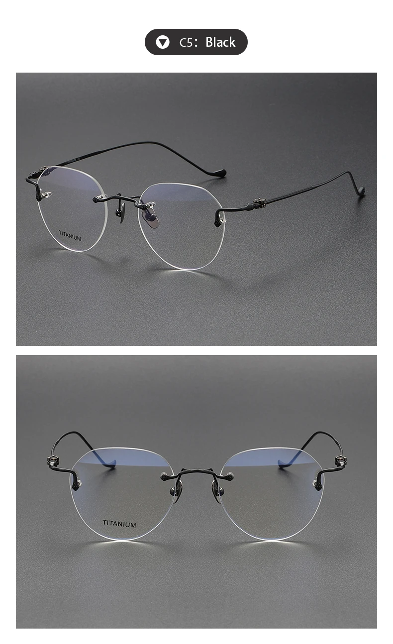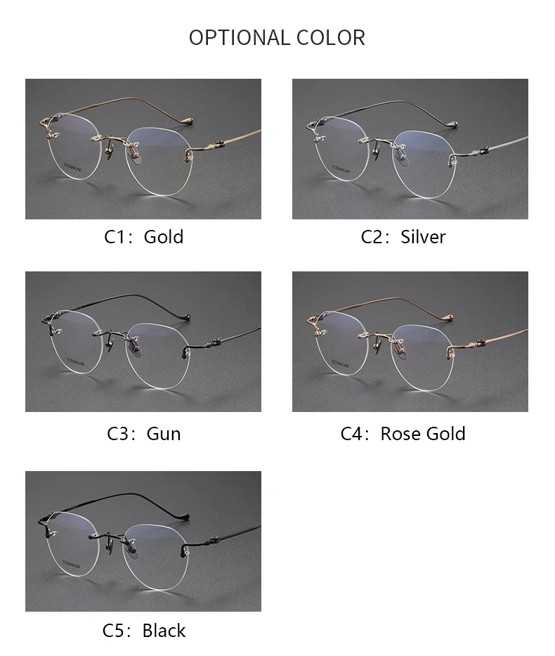 Frame Color: GRAY, Eye Prescription: 0 - BLMUSA Pure Titanium Rimless Anti-blue Light Reading Glasses for Men Round Photochromic Optical Prescription with MR-8 lens
