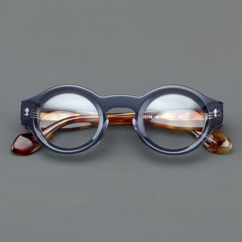 Frame Color: GRAY, Eye Prescription: +250 - VCKA Round Acetate Reading Glasses Frame Retro Men Prescription Anti-blue discolor Women Custom Optics Retro Eyewear +0.50to +10
