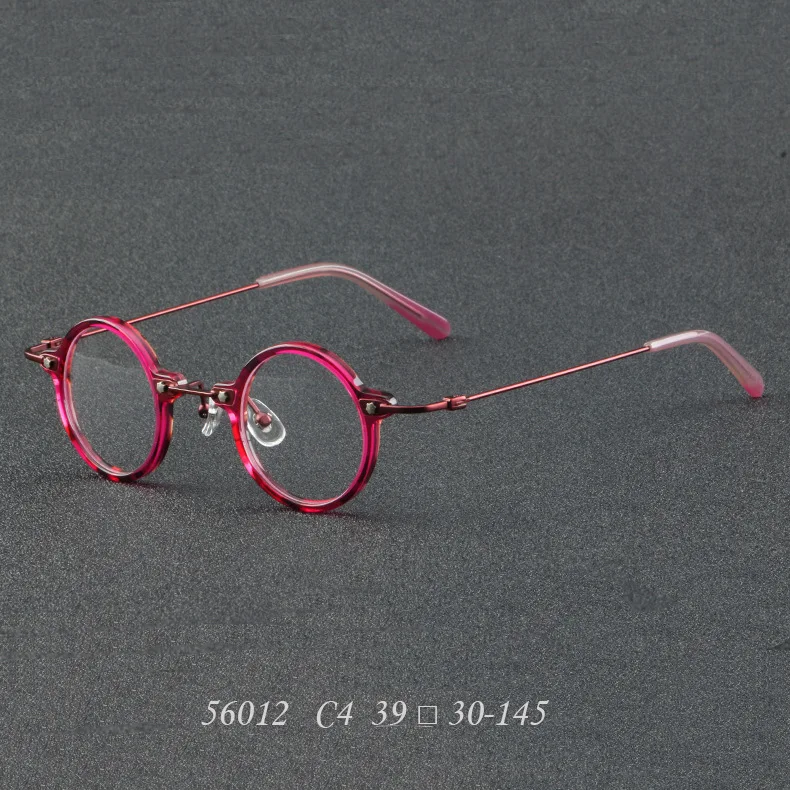 Frame Color: Red, Eye Prescription: +175 - VCKA Anti-blue Discolor Acetate+Titanium Myopia Glasses Frames Small Round Men Prescription Optical Women Eyewear -0.50 to -10.0