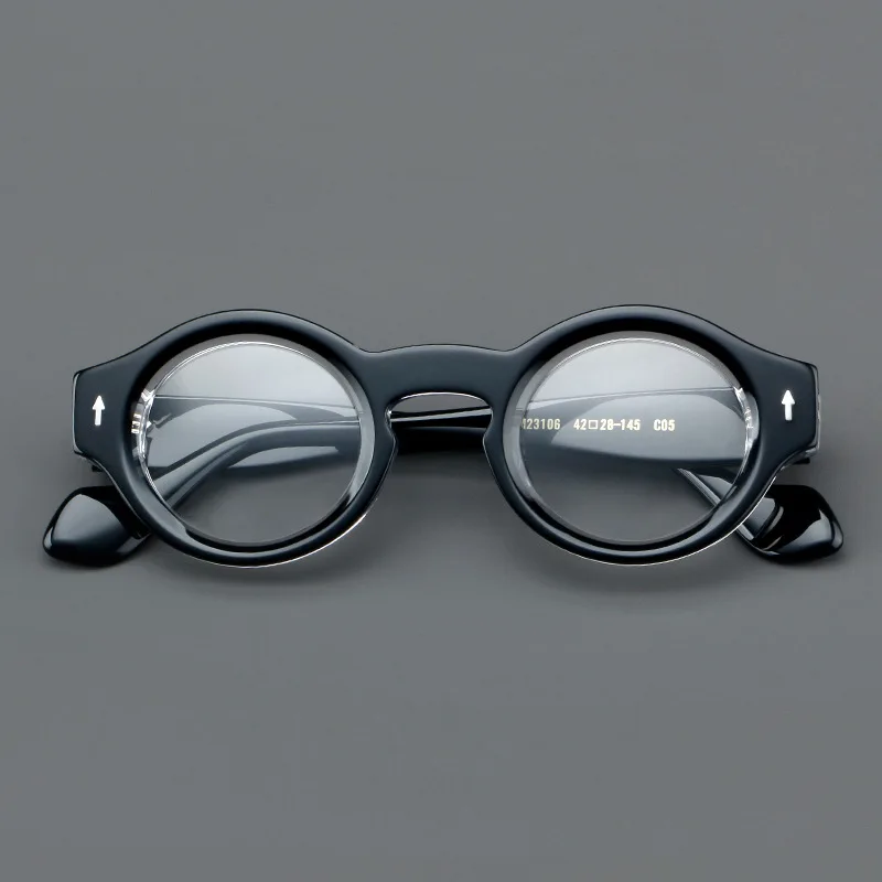 Frame Color: WHITE, Eye Prescription: +250 - VCKA Round Acetate Reading Glasses Frame Retro Men Prescription Anti-blue discolor Women Custom Optics Retro Eyewear +0.50to +10