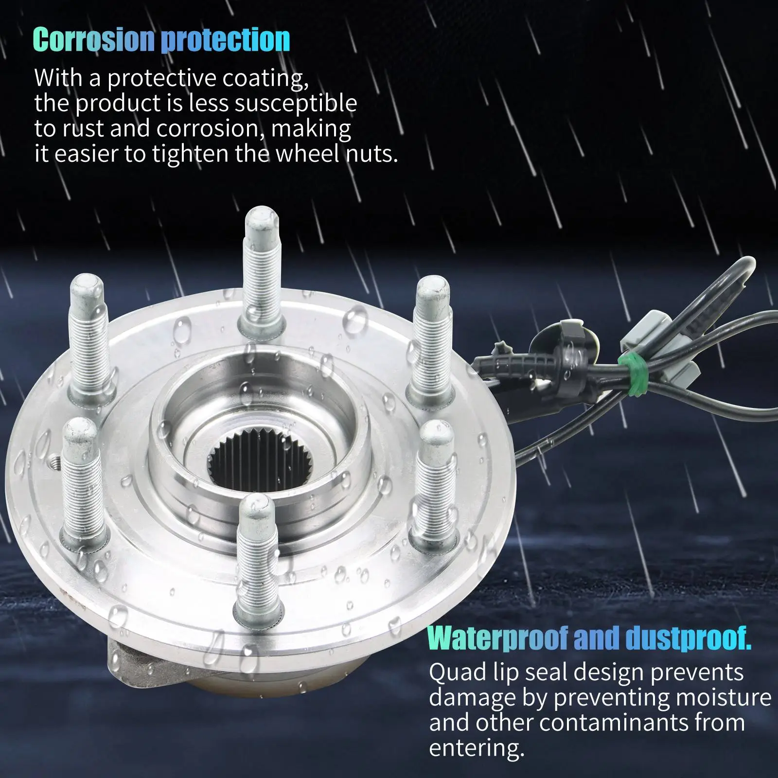 Built to handle heavy loads and high-stress driving conditions, these front wheel hub bearings offer extended service life, even with everyday use and harsh environmental conditions. They provide superior protection against moisture, dirt, and road debris, helping to prevent premature wear and tear.