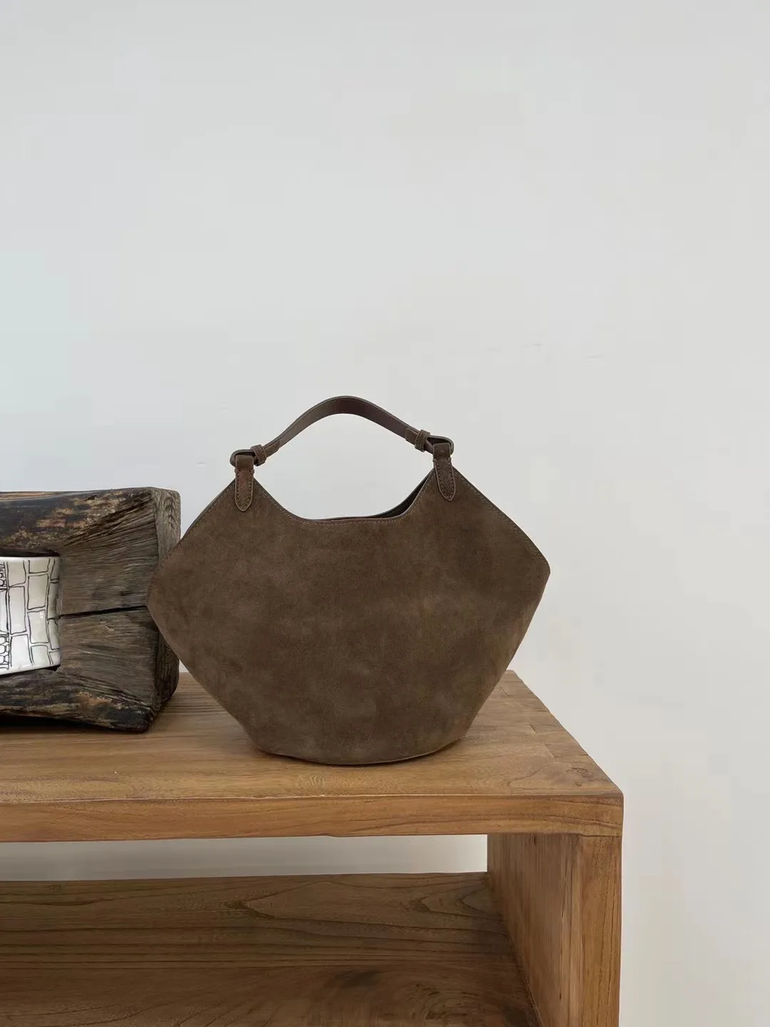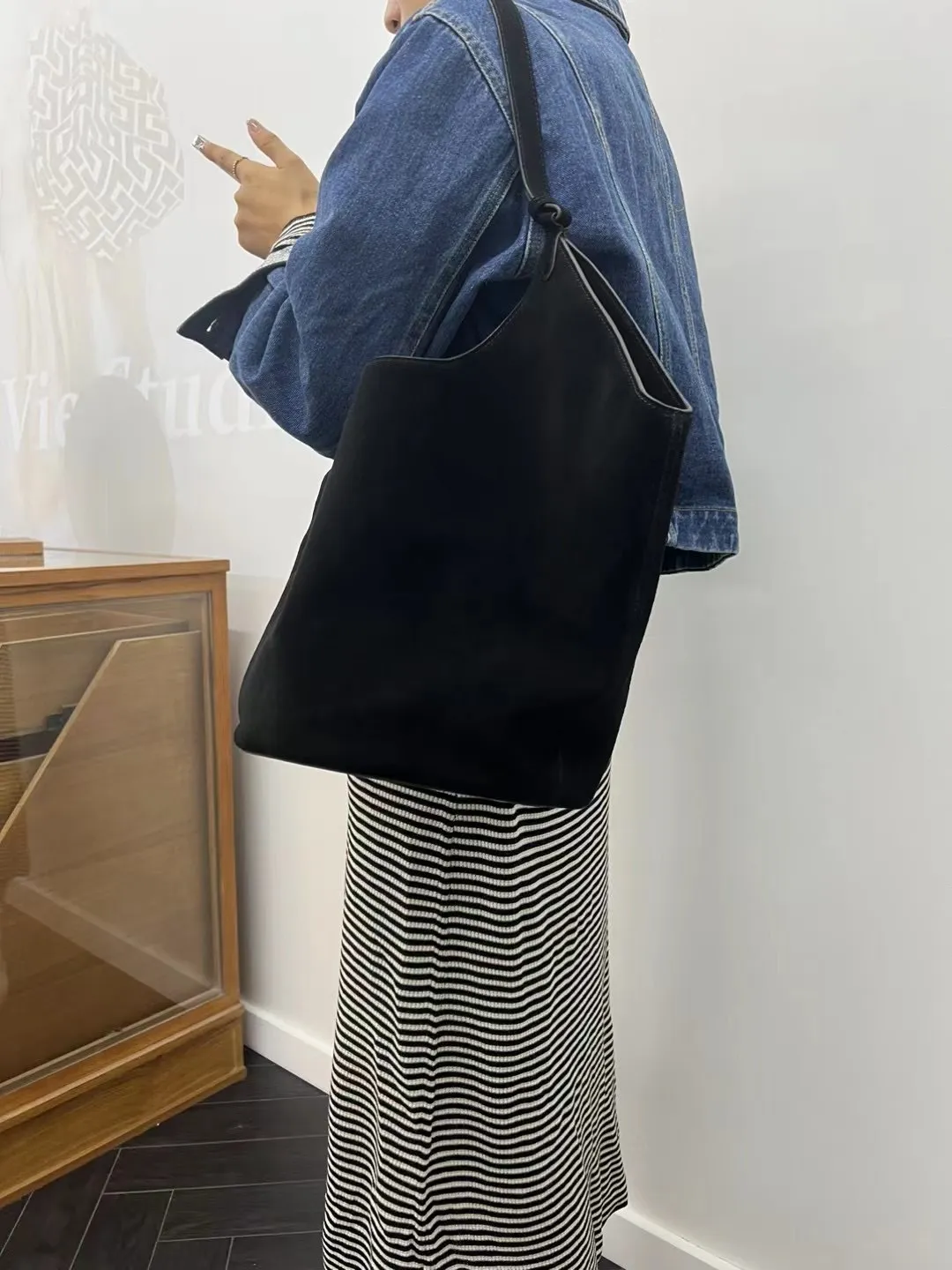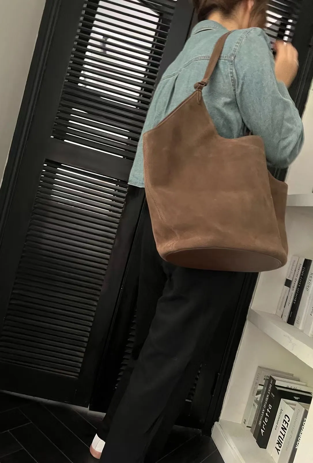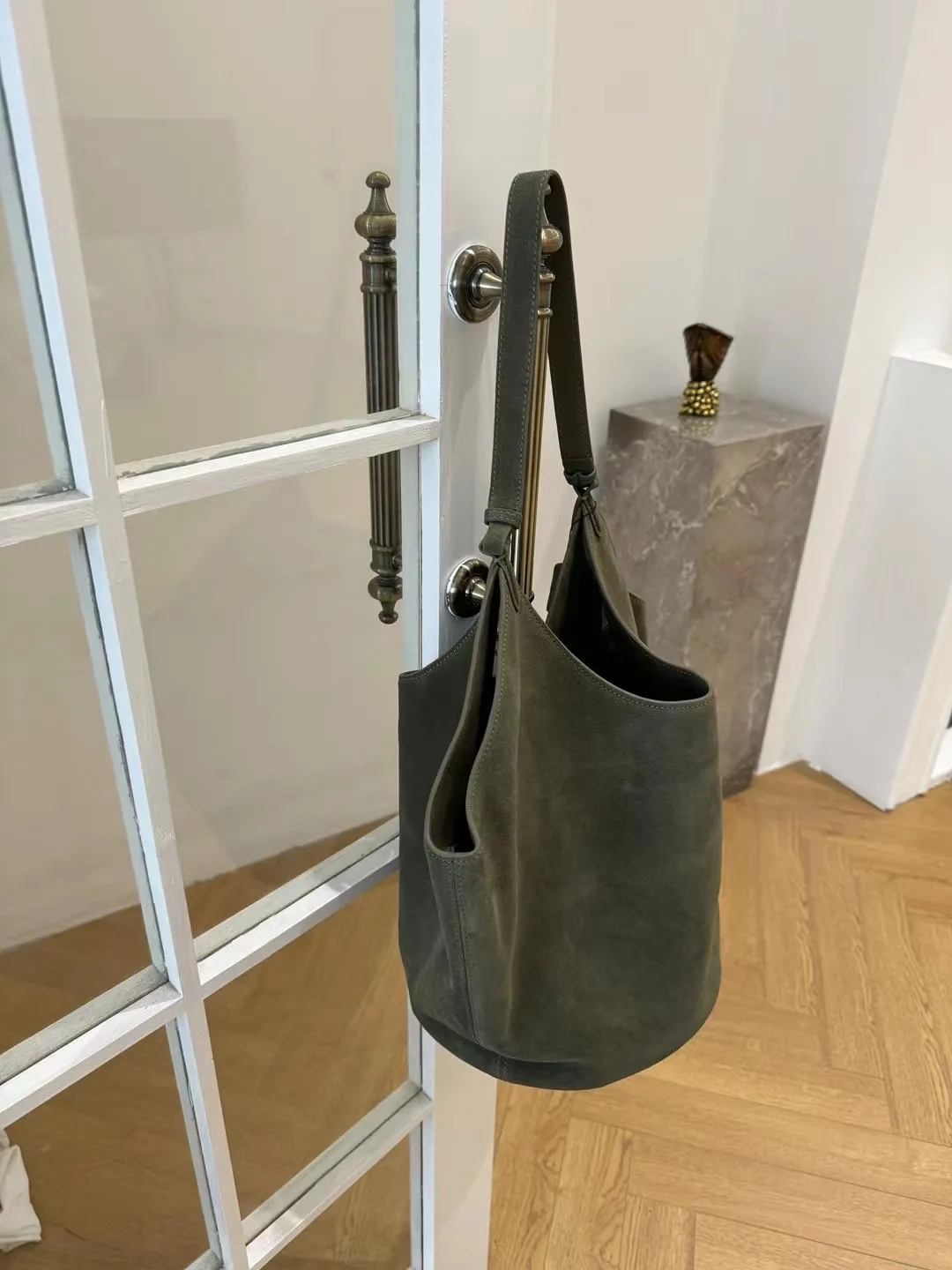 Frosted Cowhide Bucket Bag Large Capacity Genuine Leather