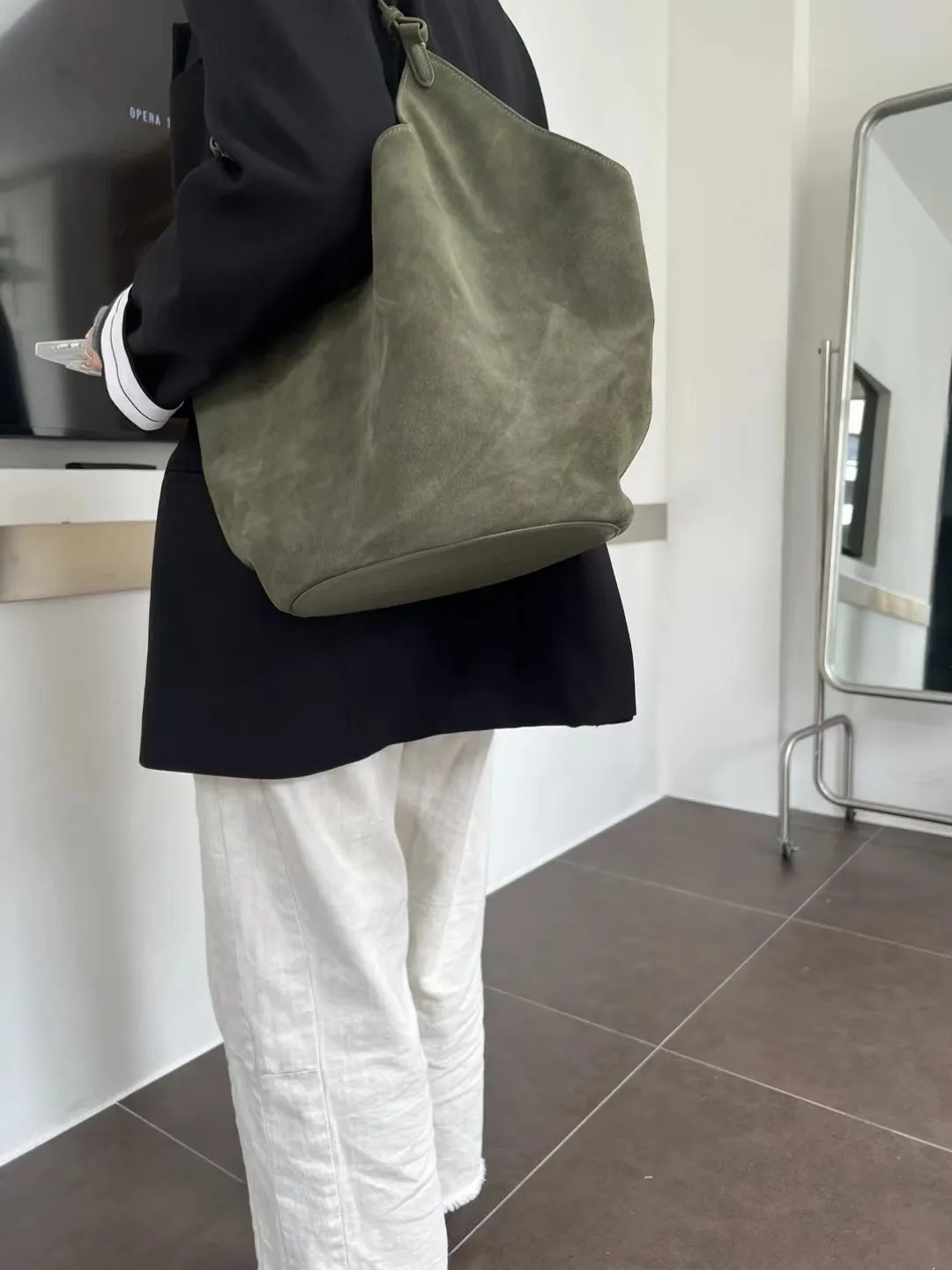 Designed with practicality in mind, the Frosted Cowhide Bucket Bag offers ample storage space for all your essentials. With its large capacity, it easily accommodates everything from your phone, wallet, keys, and makeup, to a tablet, water bottle, or even a small book. Whether you're heading to the office, running errands, or enjoying a day out, this bag will keep your items organized and accessible. The spacious interior ensures you never have to compromise on what to carry, offering plenty of room for your daily necessities.