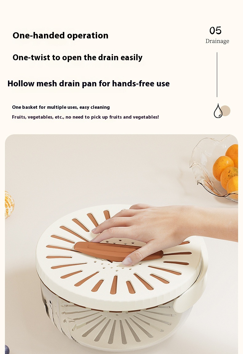 Fruit Drain Basket With Lid Vegetable Washing Bowl