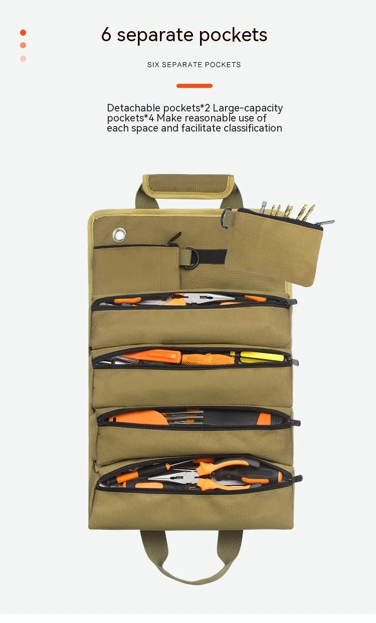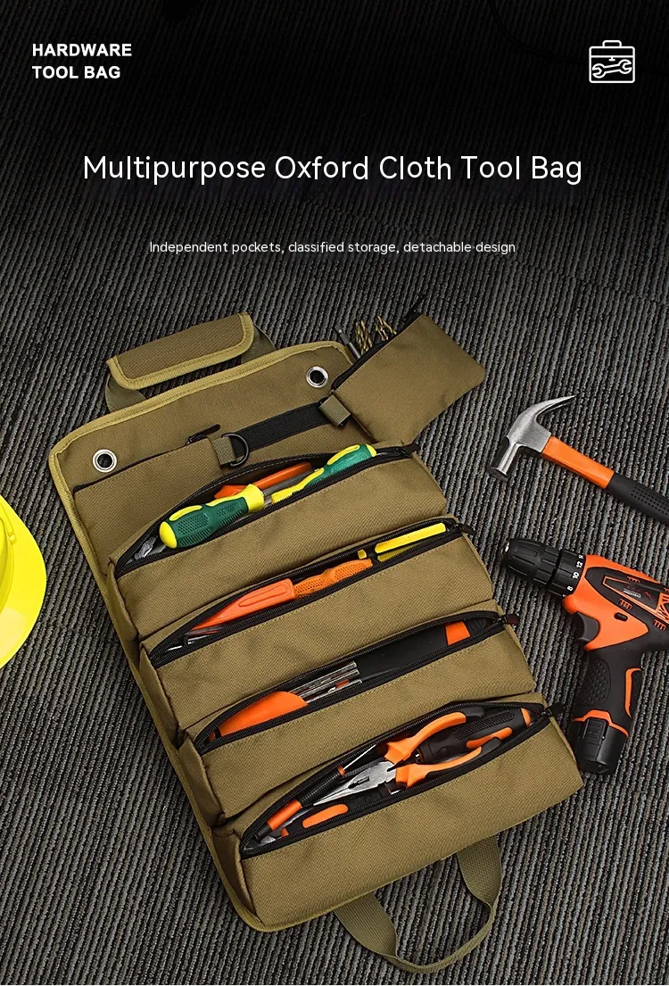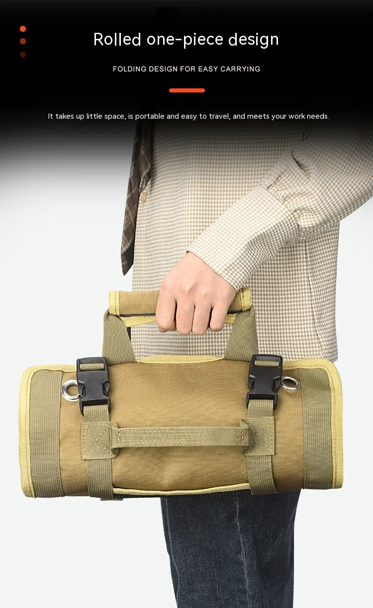 Organize and protect your tools with our Functional Roll Hardware Tool Storage Bag, designed for the needs of gardeners, electricians, woodworkers, and automotive enthusiasts alike. This versatile roll-up bag features multiple compartments and pockets, allowing you to securely store and easily access your tools on the go. Made from durable, wear-resistant materials, this tool storage bag is built to withstand the demands of both indoor and outdoor environments, providing long-lasting protection for your hardware essentials.