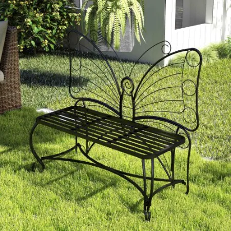 Product Name:Butterfly Cast Metal Garden Bench, Outdoor Bench Patio Seat, Park Bench Outdoor Seating for Garden, Yard, Park, Entryway