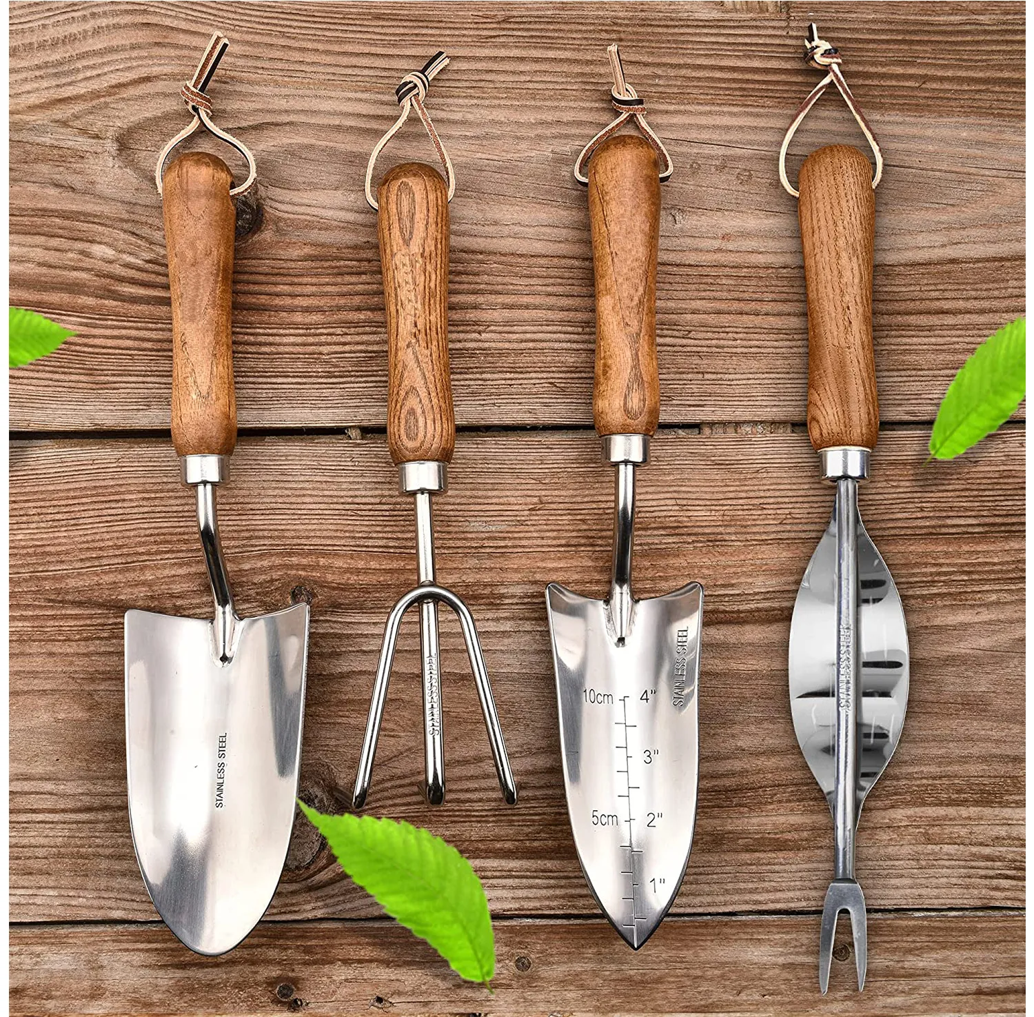 Garden Tools Stainless Steel Tools With Wooden Handle 4-piece Set