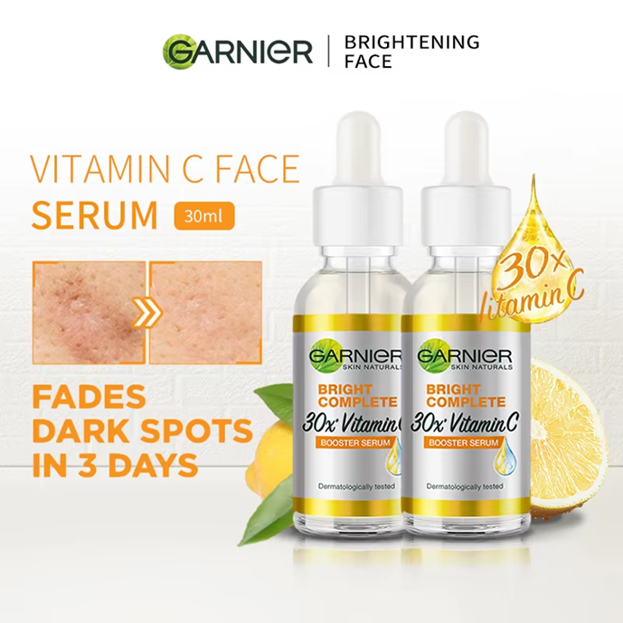 Garnier Bright Complete 30x Vitamin C Niacinamide Booster Serum Whitening Skin Tone Essence Fade Acne Mark Beauty Products 30ml
